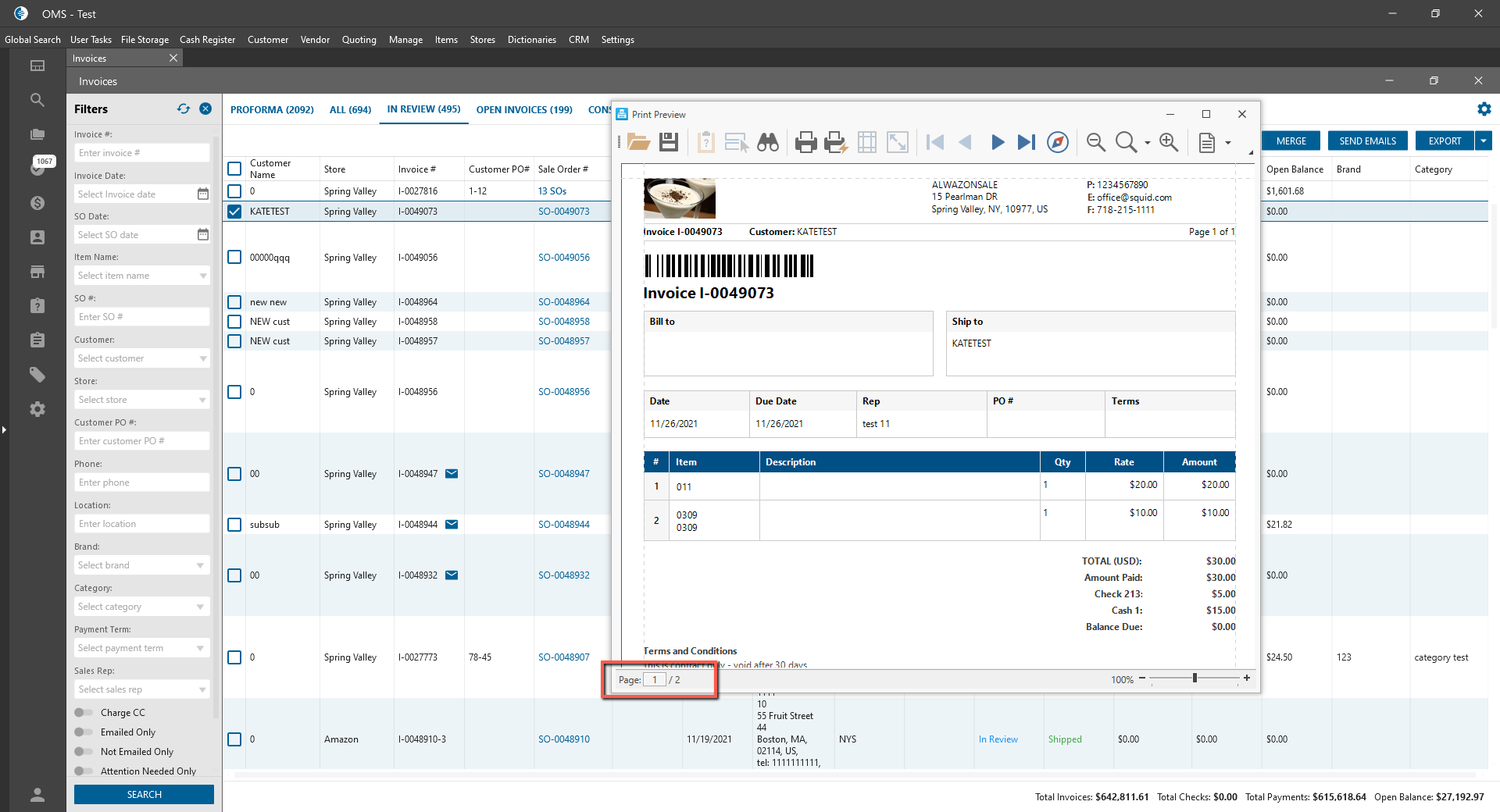 - Invoices List form -> “Print” multi-button -> Print Invoice;