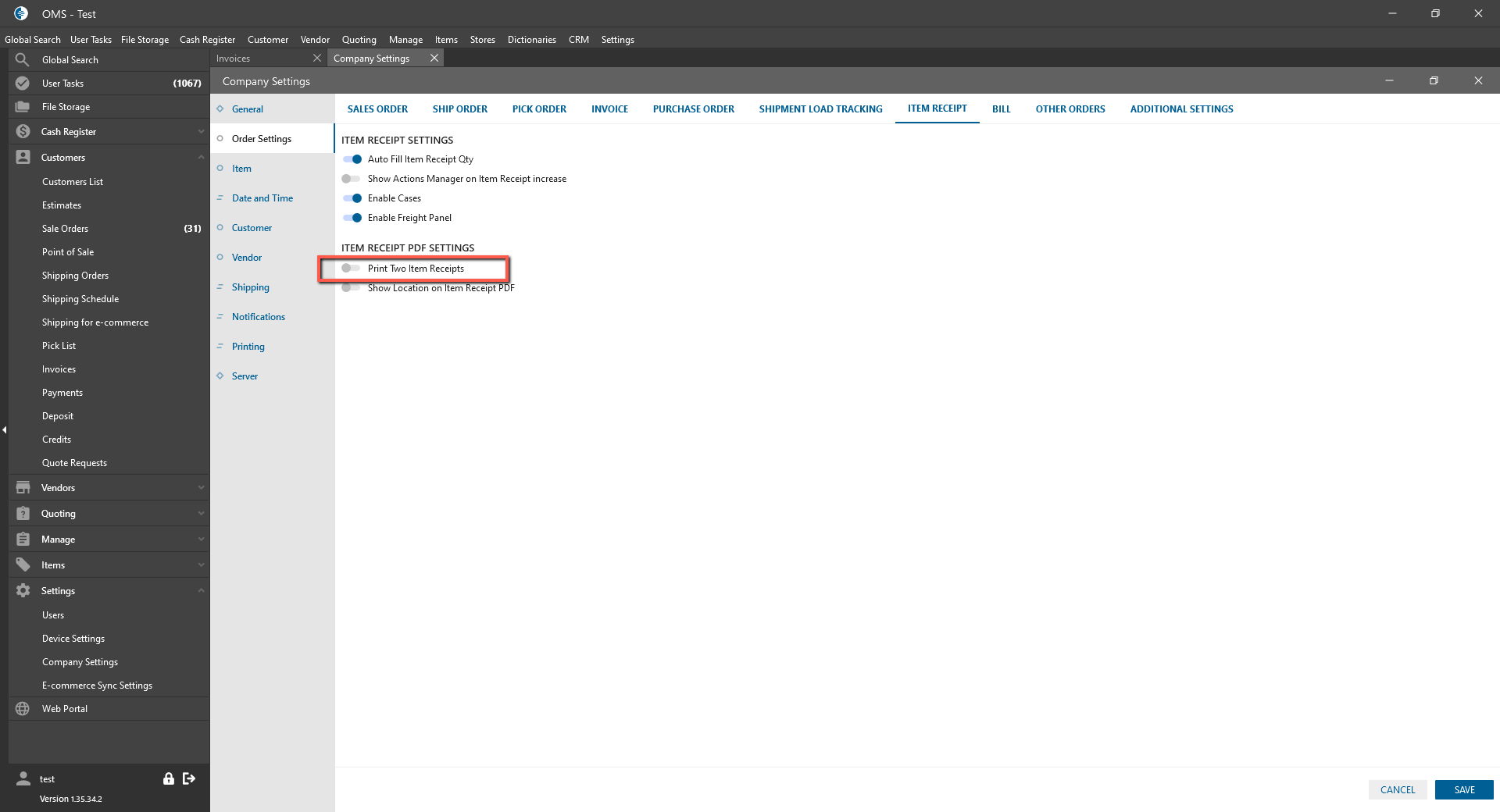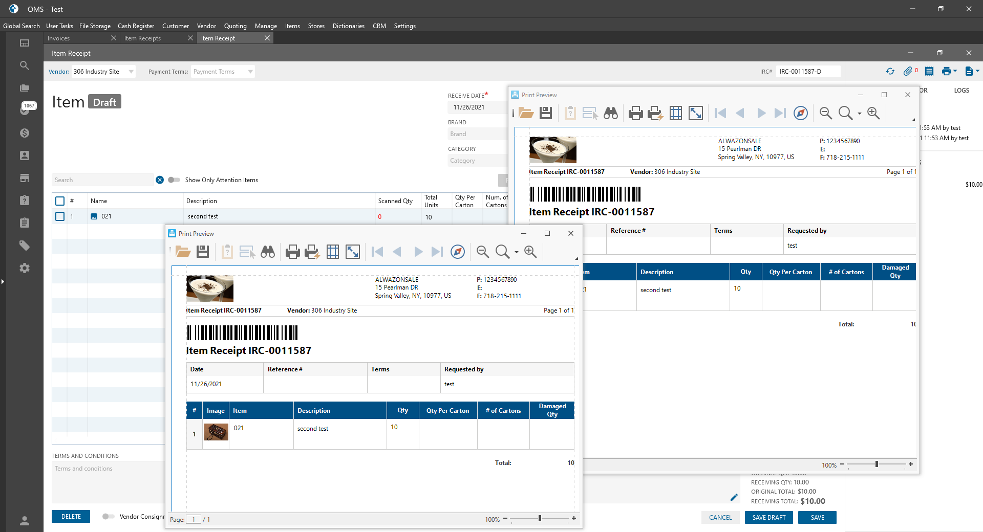 - after clicking on the next buttons 2 Item Receipts are printed:
