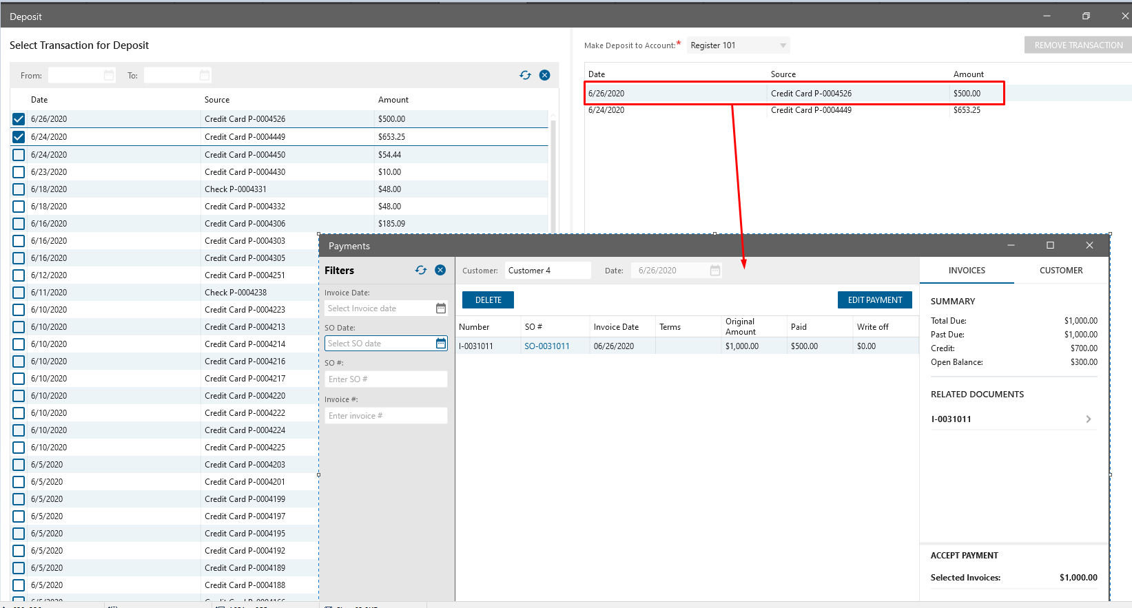 - all unpaid Orders are displayed on the Payments list form
