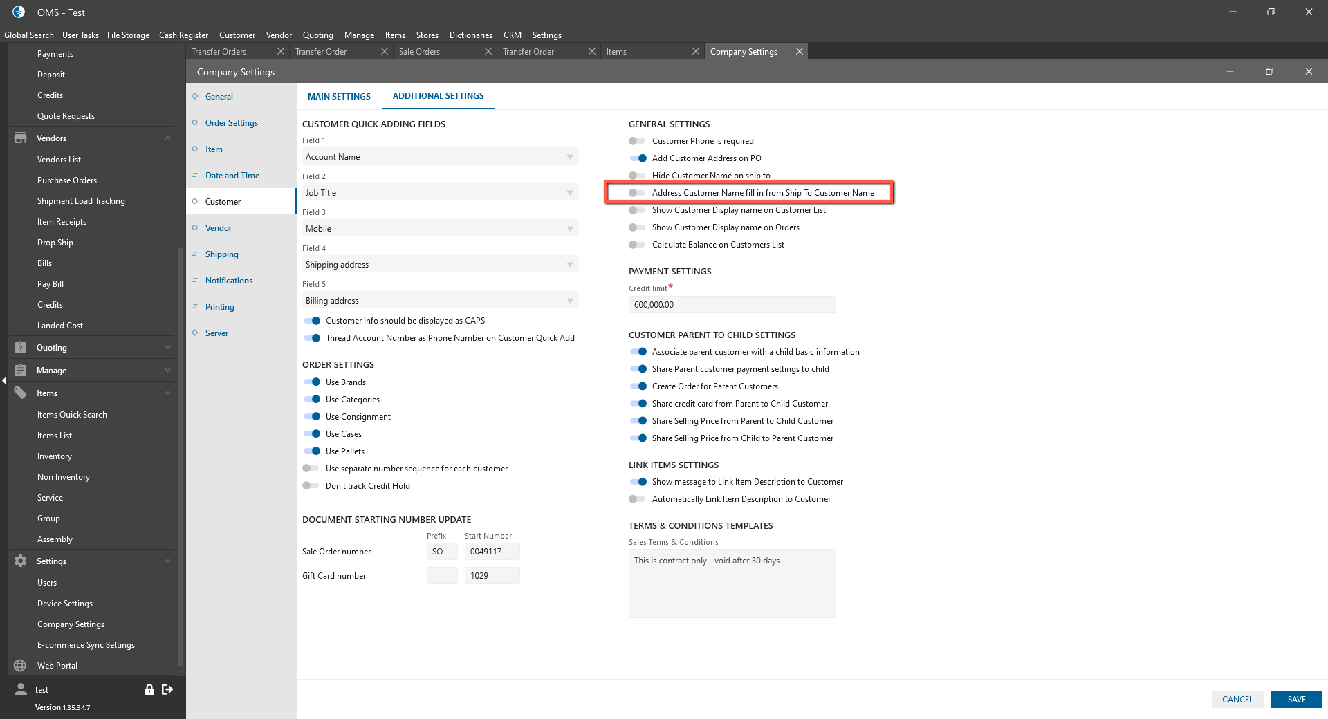 - “Address Customer Name fill in from Ship To Customer Name” checkbox: