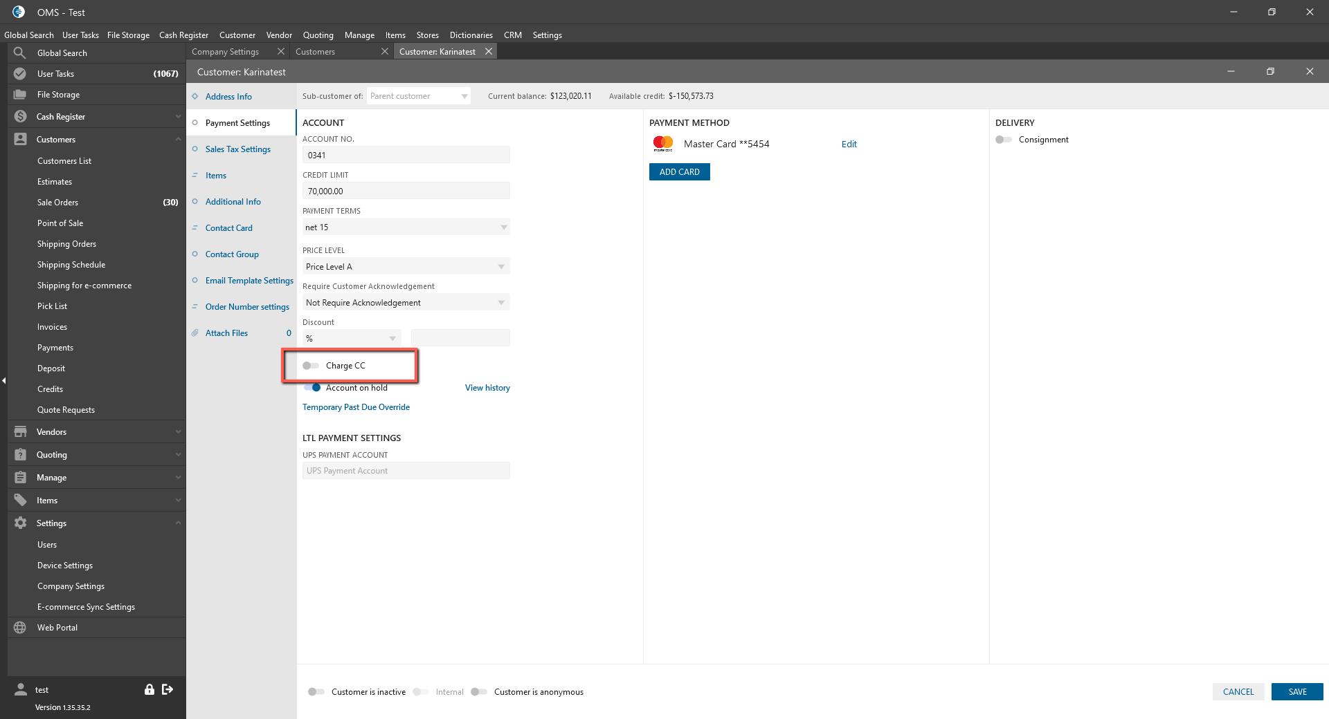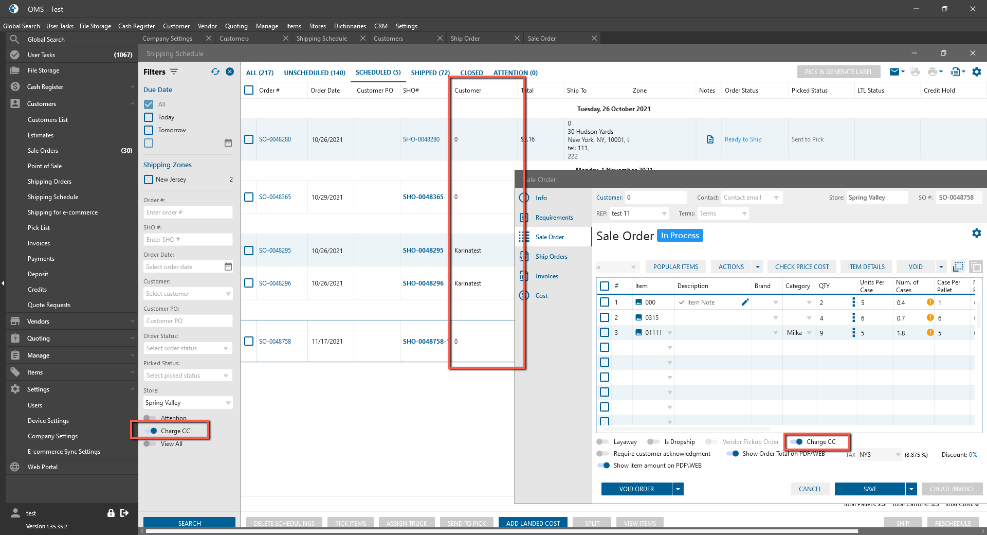 - Orders with customers who have checked Charge CC checkbox on the edit form and Orders with checked “Charge CC” on the edit form are displayed on the list form.