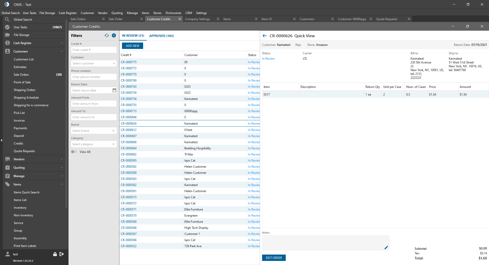 - After clicking on the Customer Credit Number -> Customer Credit Quick view panel is opened;
