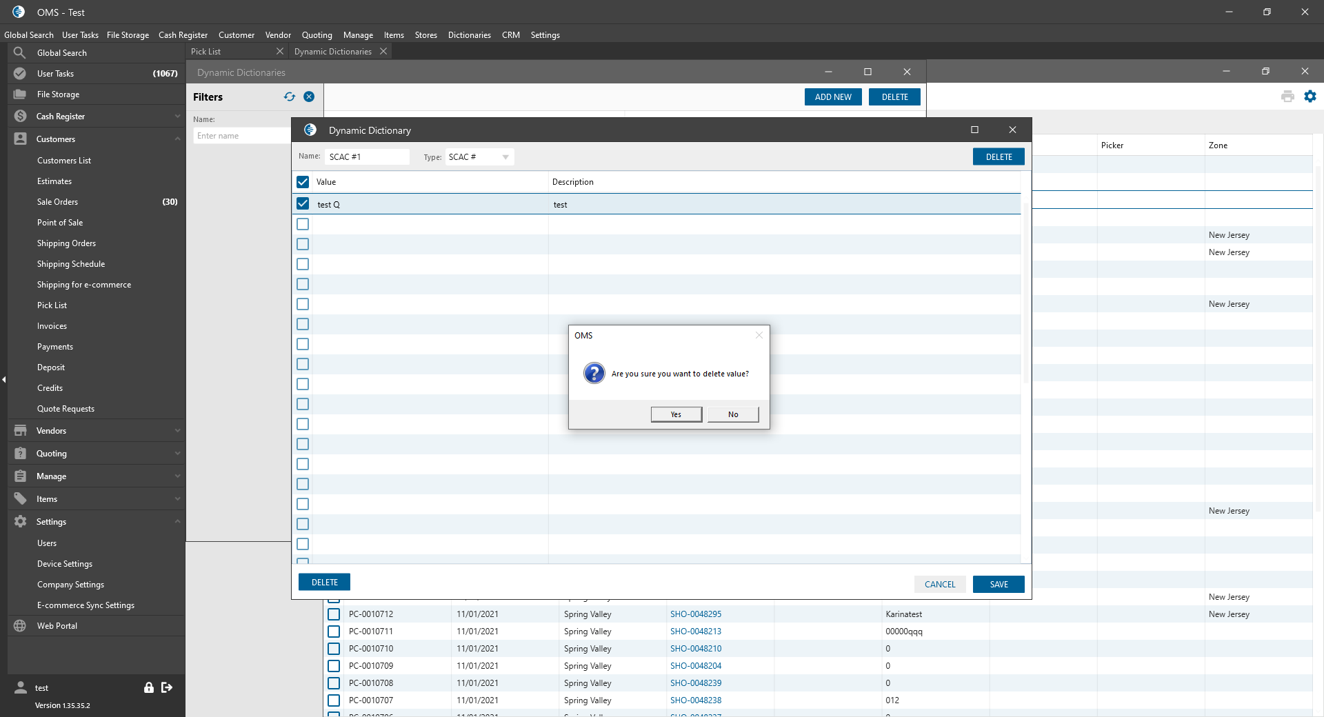 - Yes -> the pop-up is closed and SCAC# is deleted;