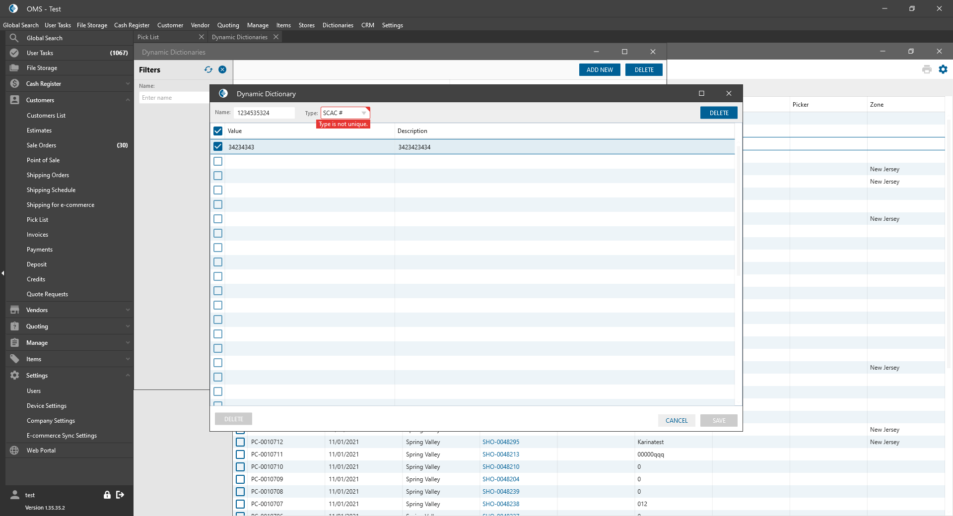 - if the user tries to create one more dictionary with such type the validation is displayed: “Type is not unique”;
