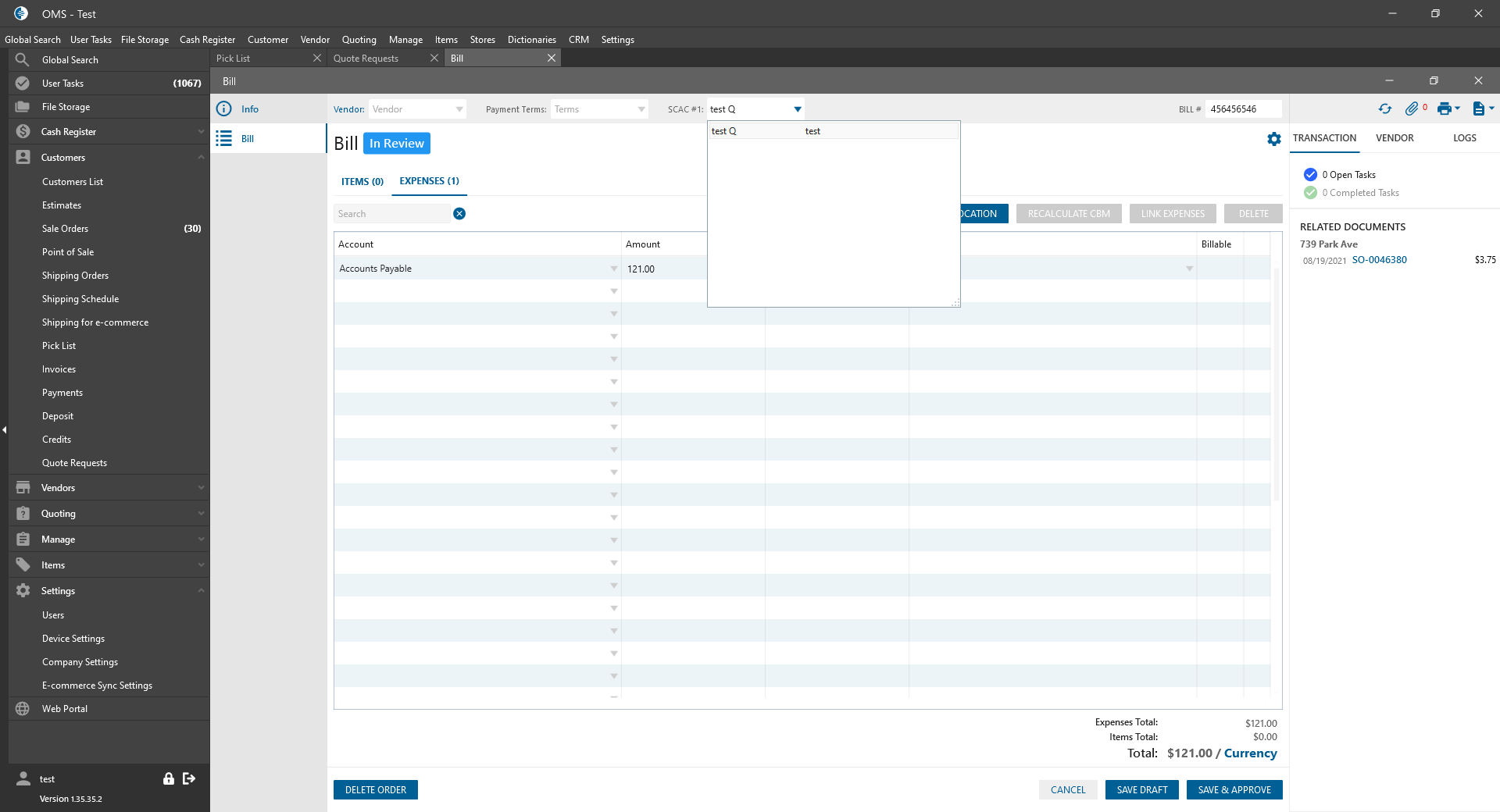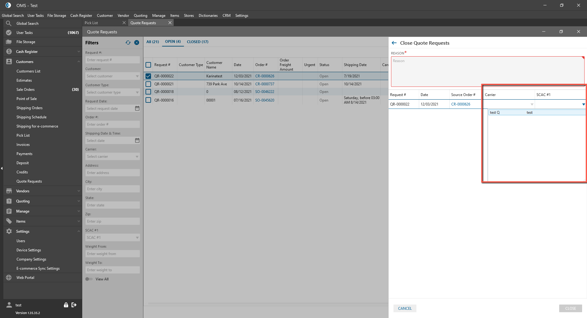 - Also, this dropdown with values is displayed on the Close Quote Requests panel in the SCAC# column.