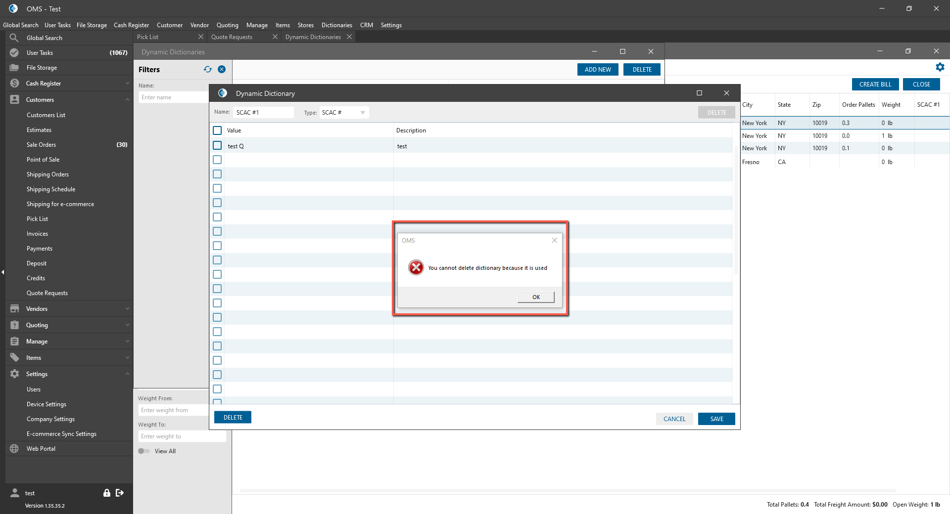 - if SCAC# don’t use for any Orders -> OMS message is displayed: