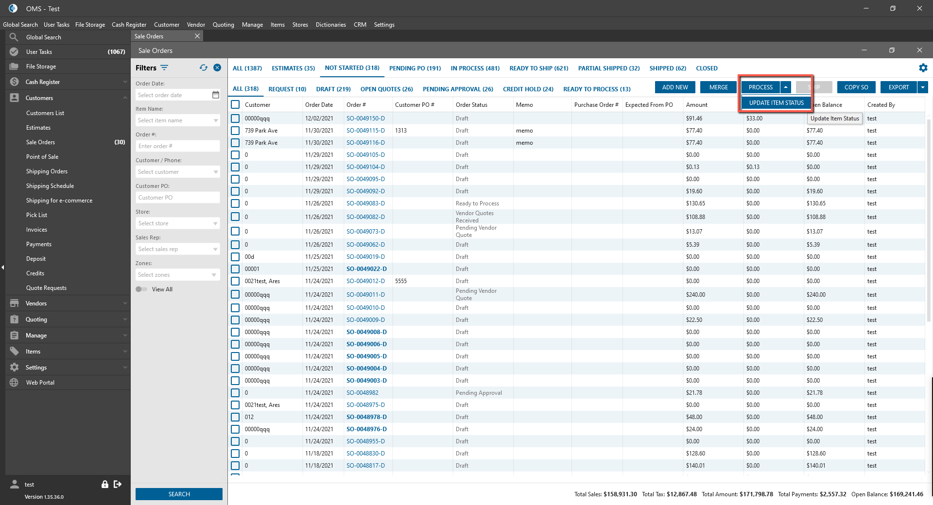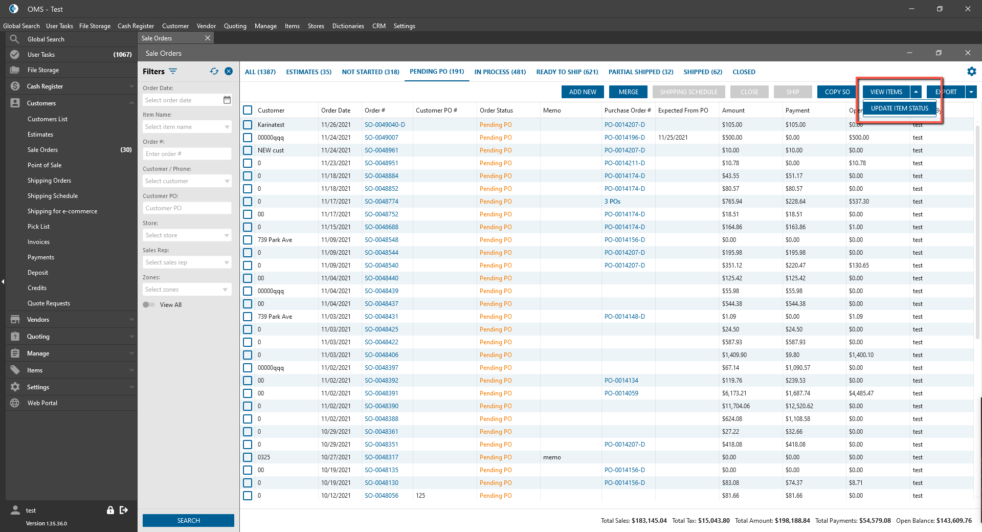 - was added to the View items multi-button on Pending PO / In Process tabs;