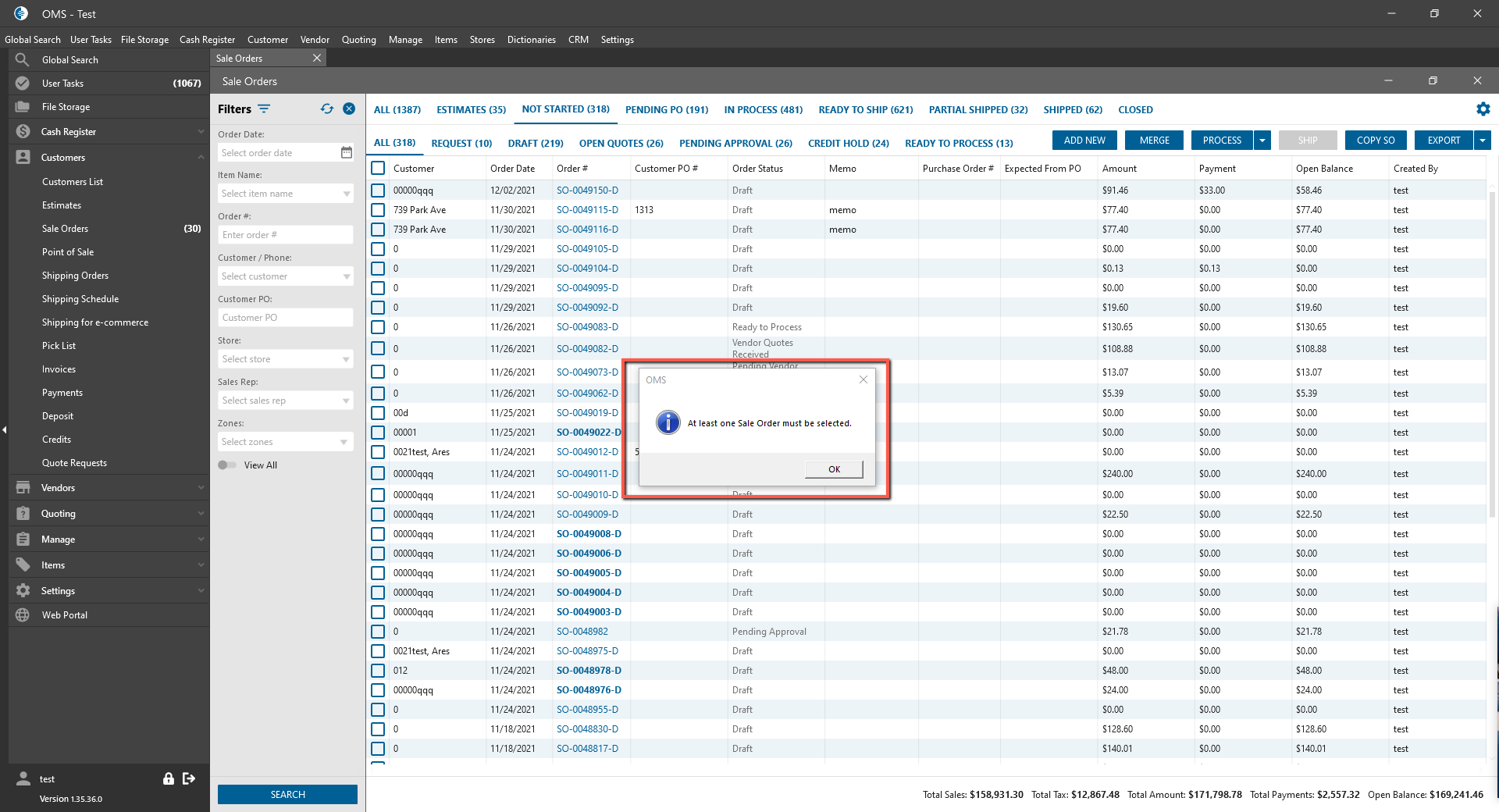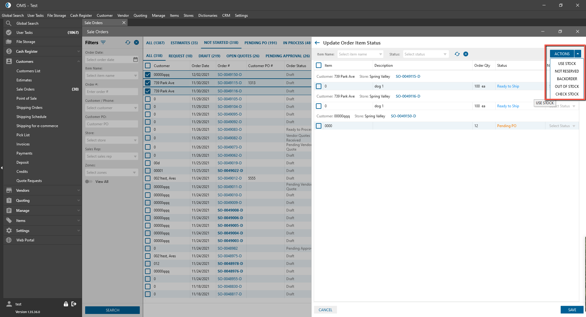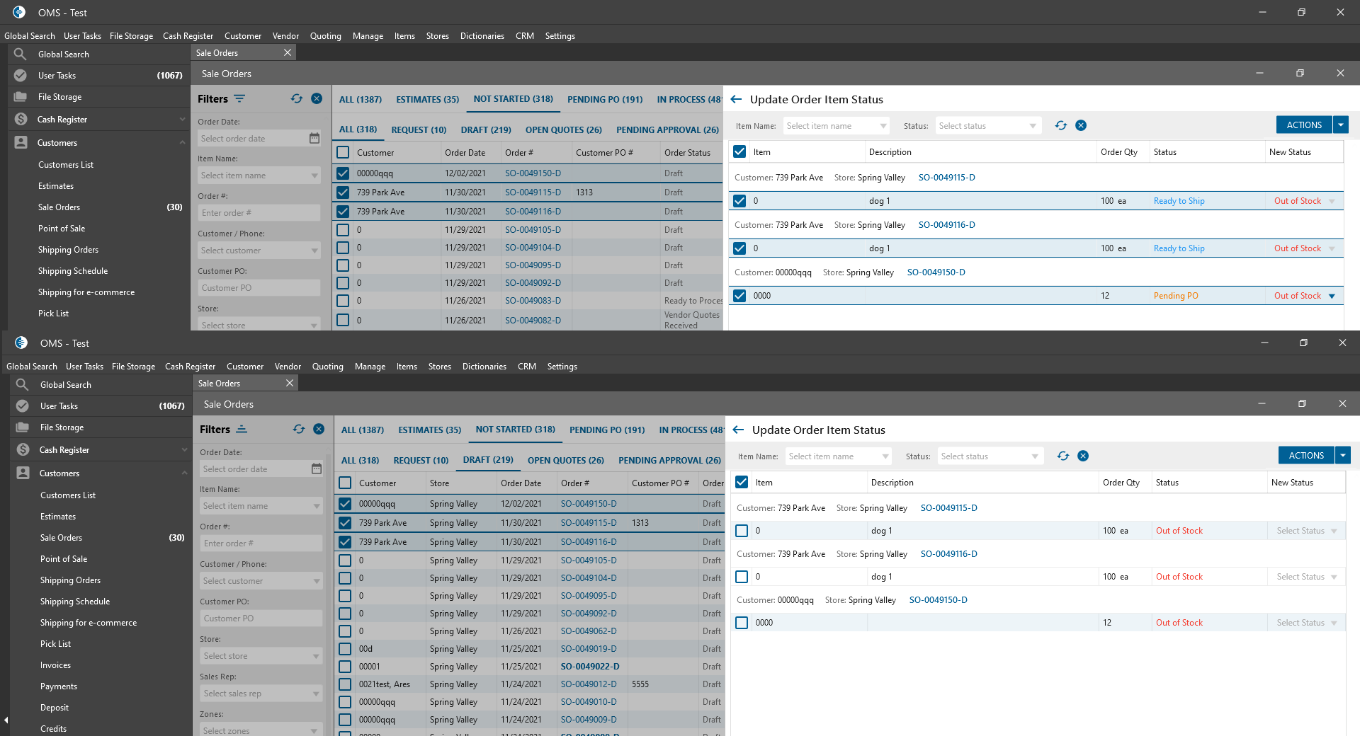 - Each selected Sale Order is separated by Customer Name, Store and Order Number;