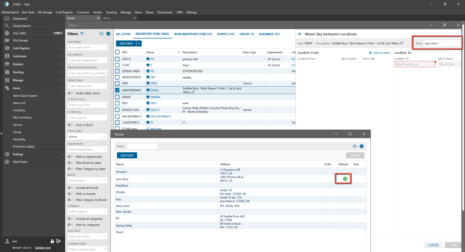 - If on the Stores List form was selected Default Store -> this Store is automatically prefilled on the panel;