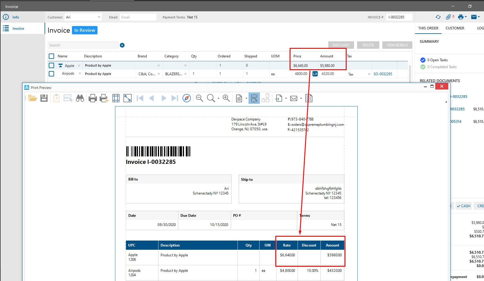 After clicking on the Print/Create pdf iconsĀ on the Invoice edit form will be generated pdf file with prefilled Rate and Amount (in case corresponding values have been filled on the Invoice edit form)