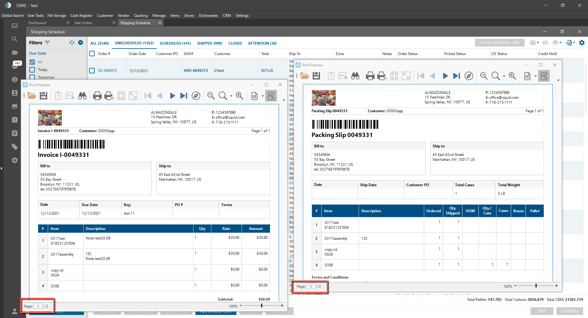 - If in the Company Settings the user checked “Print Two Invoices” / “Print Two Ship Orders” checkboxes: