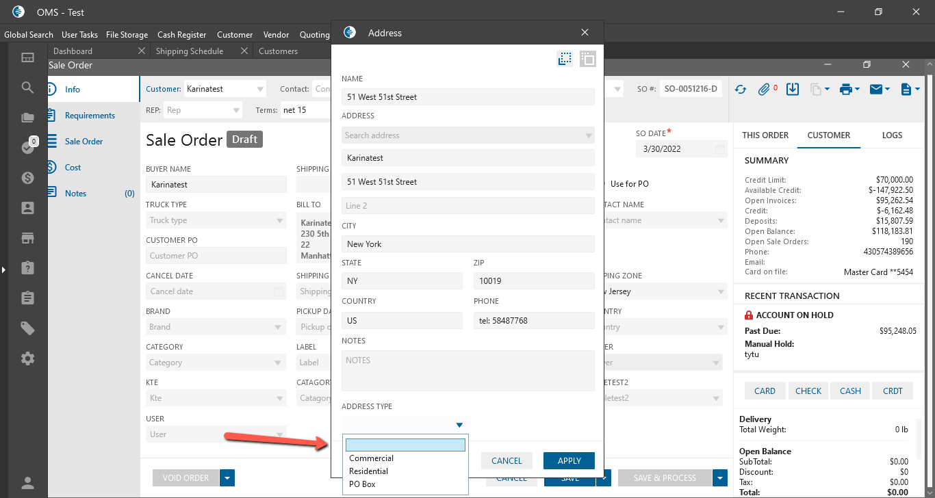 - if user added Address -> “Address type” dropdown id displayed next to “Notes” textarea: