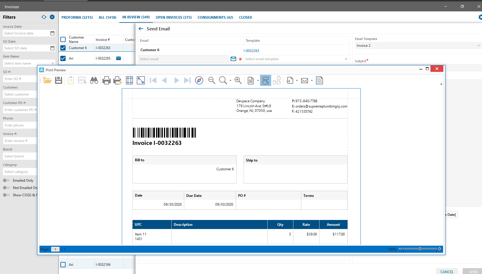 To see the Qty on the pdf User should open Invoice list form -> check required Invoices -> click Send Emails button
