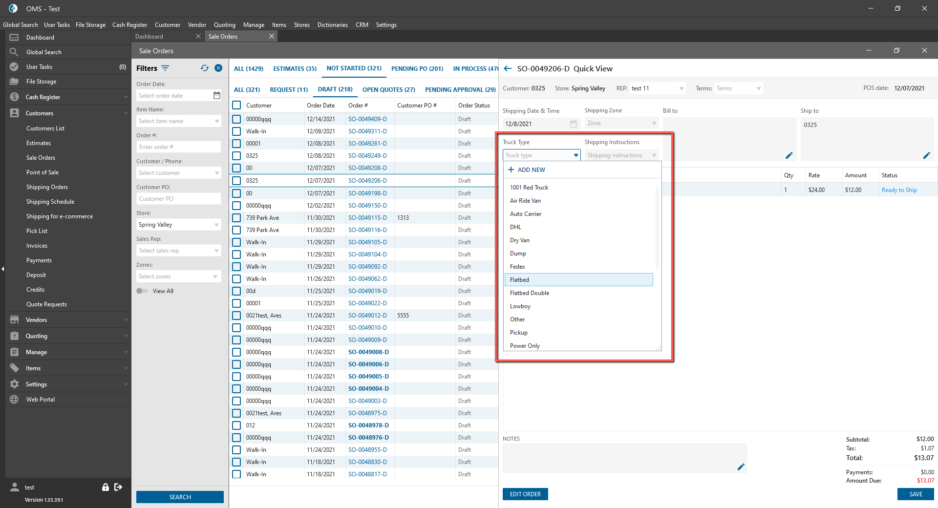 - by default -> Truck Type from Sale Order edit form is displayed;