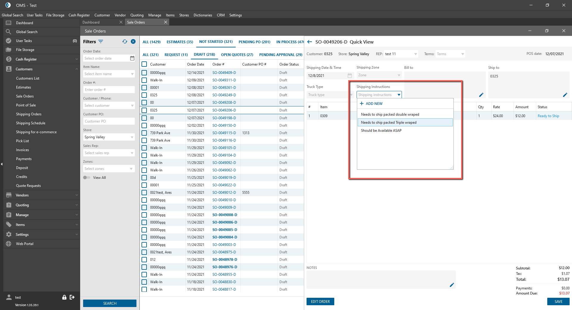 - the List of Shipping Instructions from the Dictionary is displayed;
