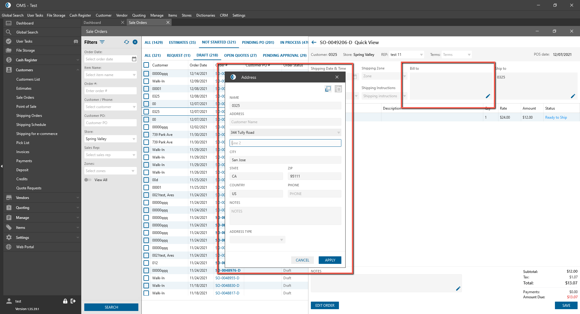 - after clicking on the Icon Address pop-up the same as on the Sale Order edit form is opened;