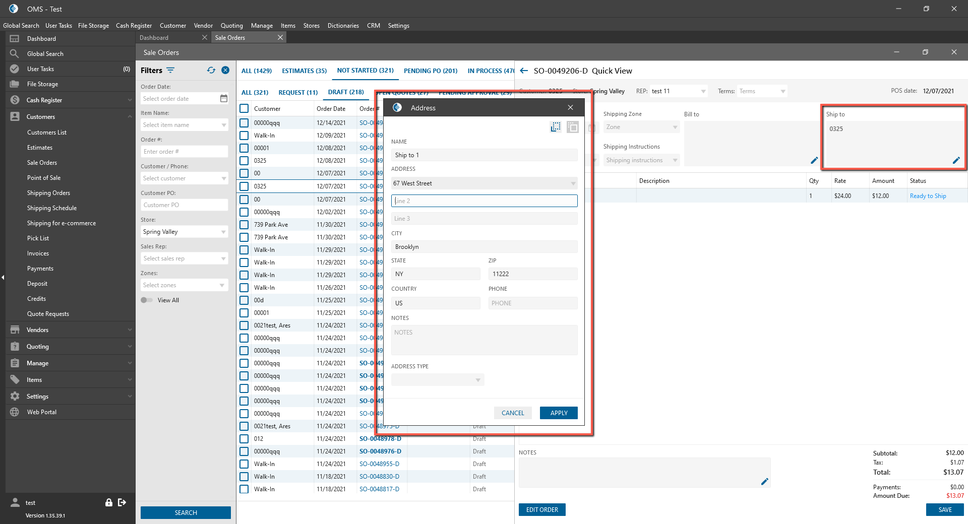 - after clicking on the Icon -> Address pop-up the same as on the Sale Order edit form is opened;