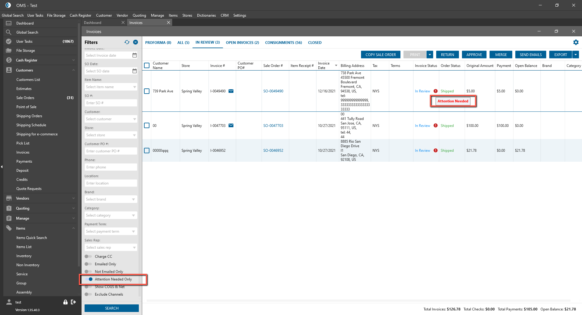 - Attention Needed Invoices are displayed in the Datagrid.