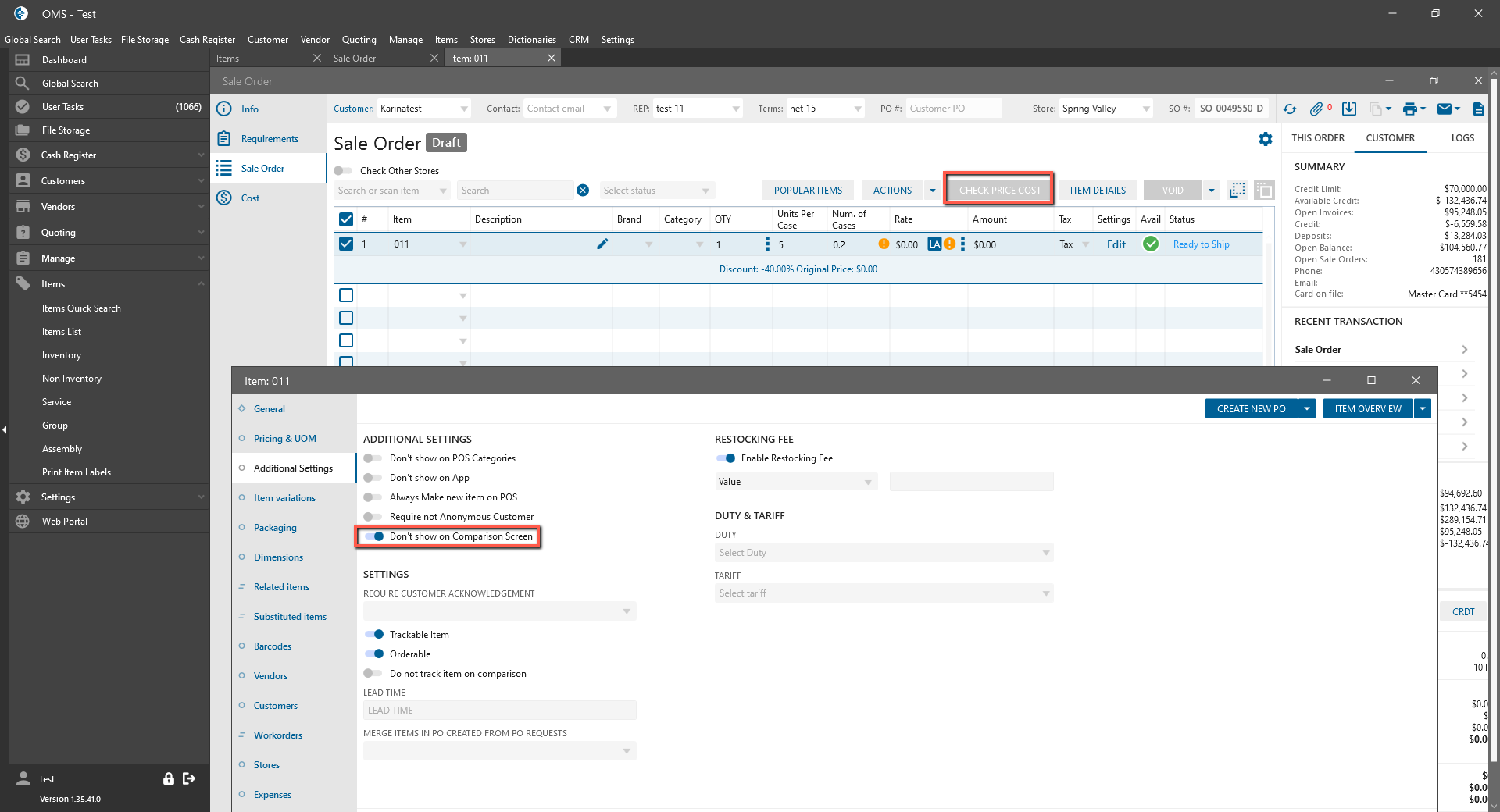 - in Order was selected item with checked checkbox -> Check Price Cost button isn’t clickable;