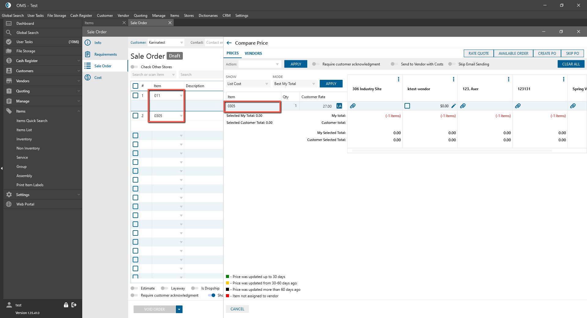 - in Order were selected items with checked/unchecked checkboxes -> Check Price Cost button is clickable and on Comparison screen are displayed only items with the unchecked checkbox.