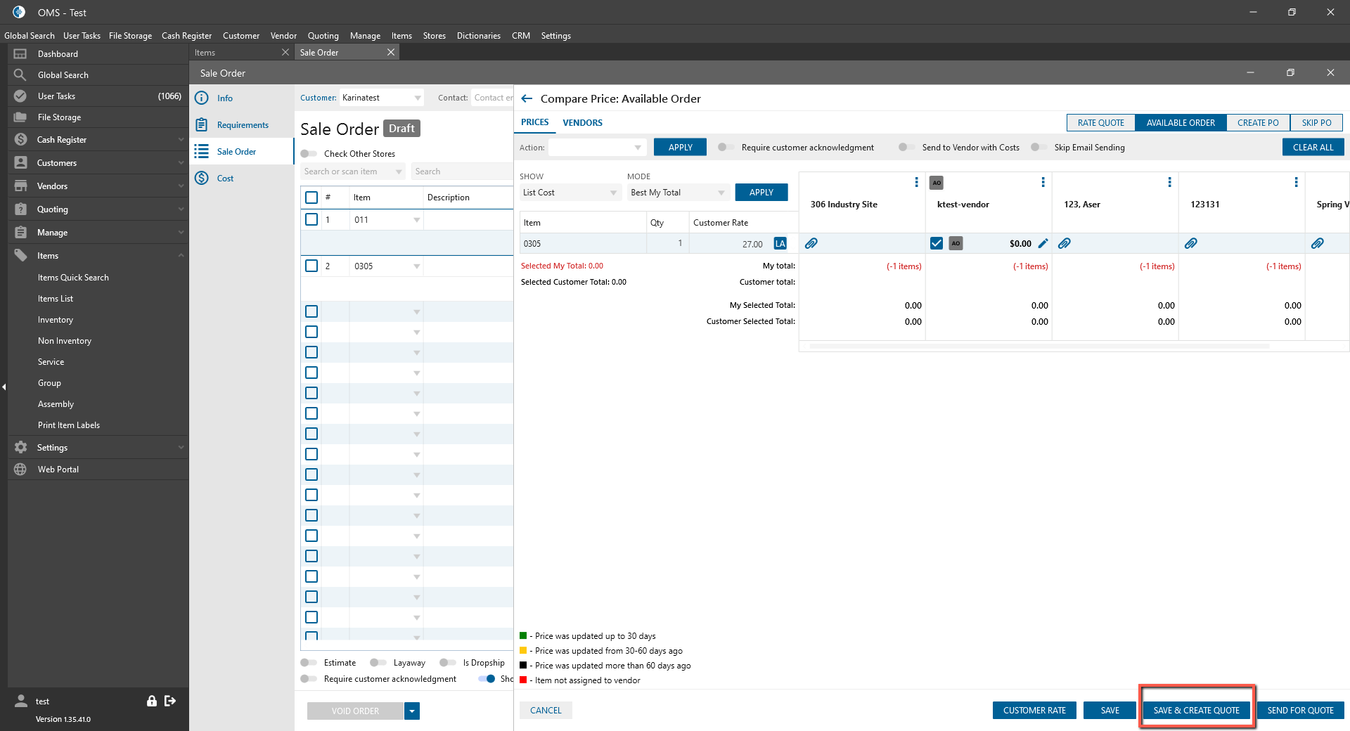 - “Save & Create Quote” button: