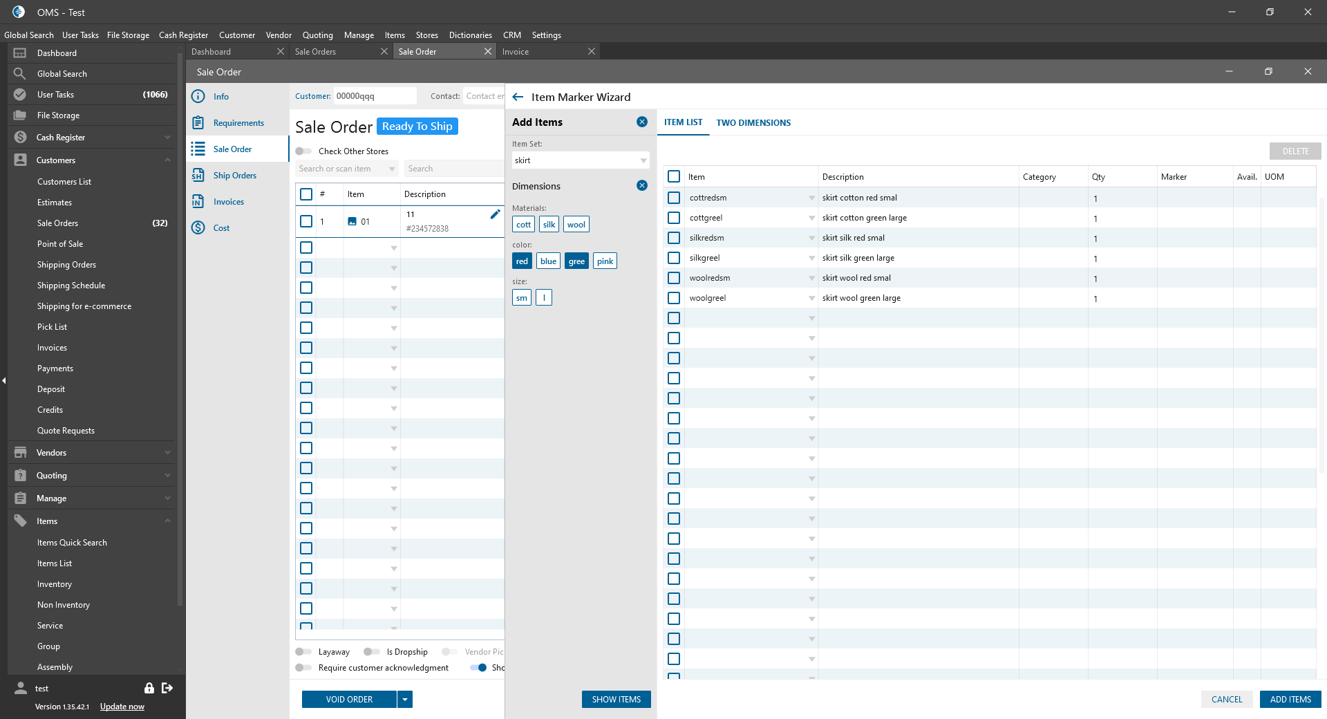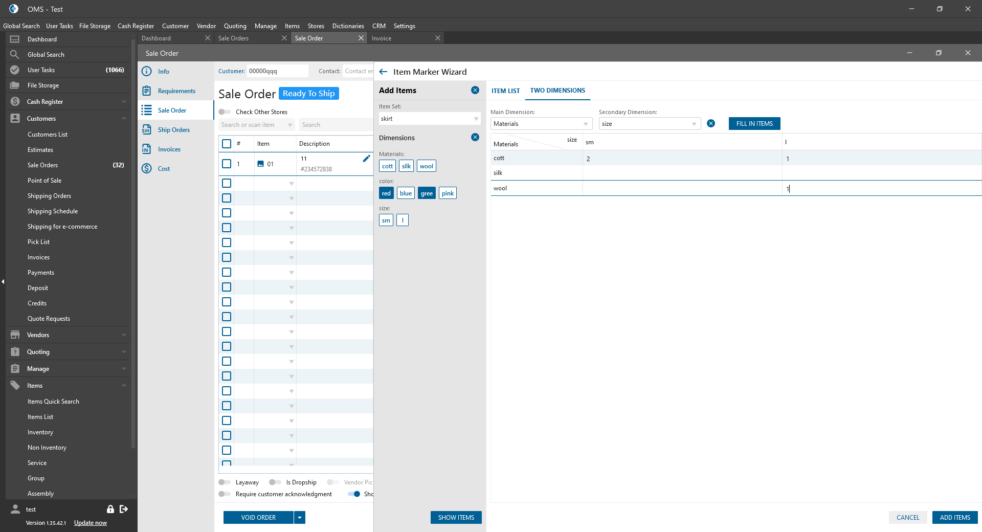 - Item Qty -> item Qty selected on the Size Chart tab in the Qty tab is displayed. Near the qty is displayed item size;