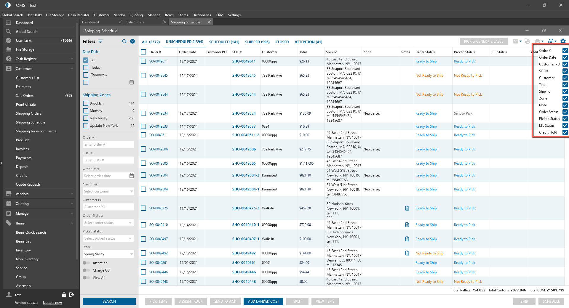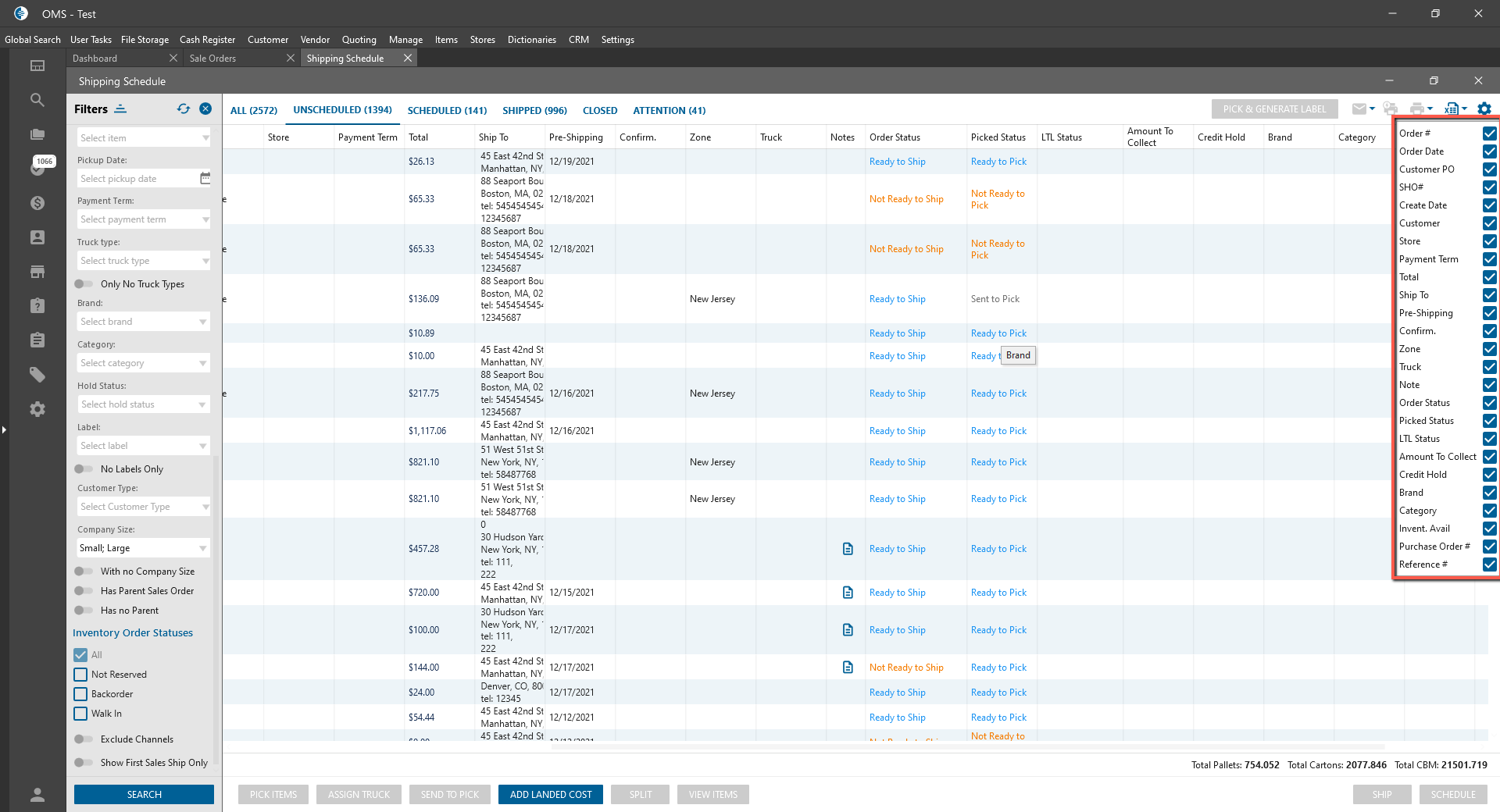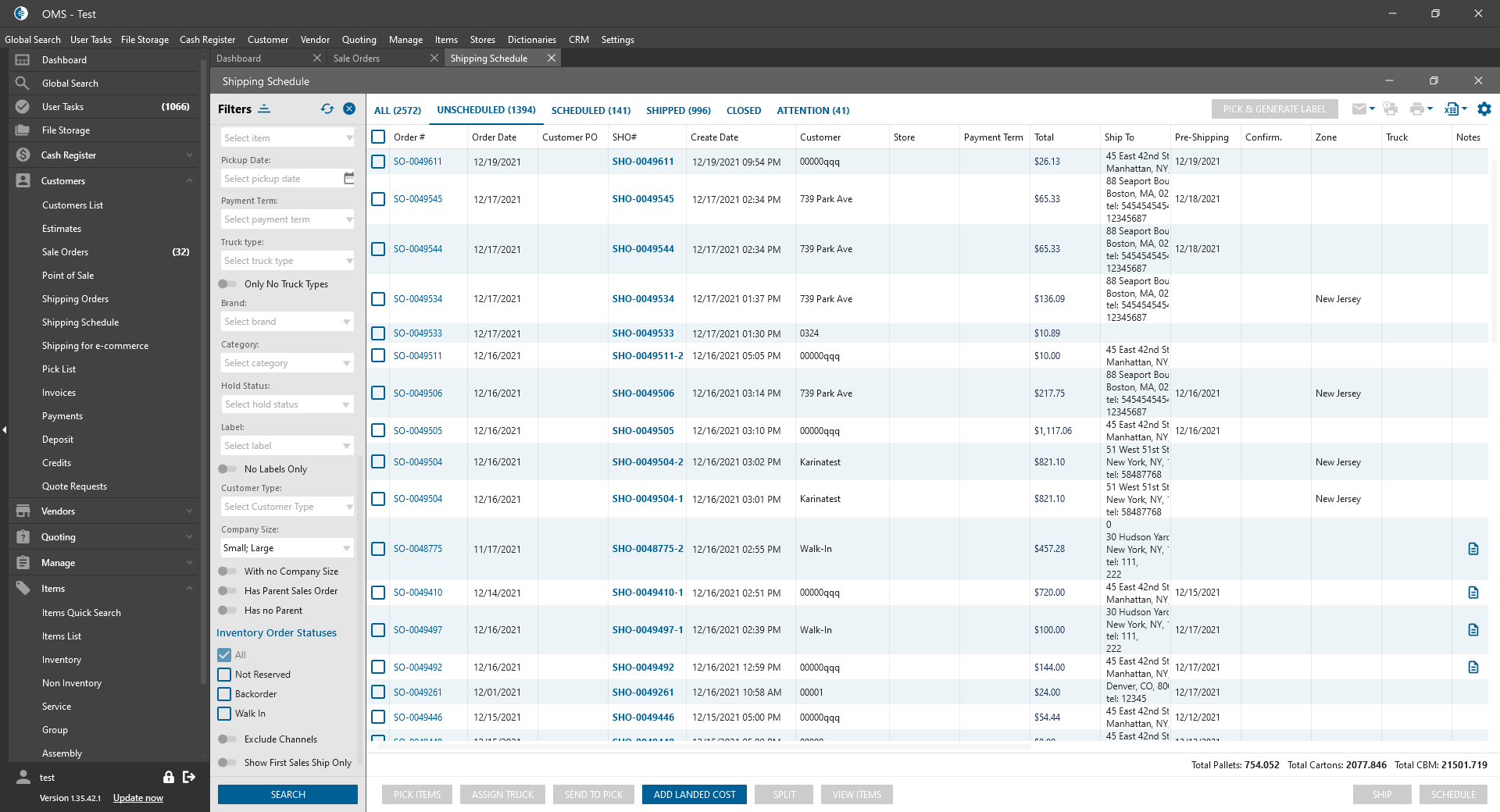Shipping Schedule List form: