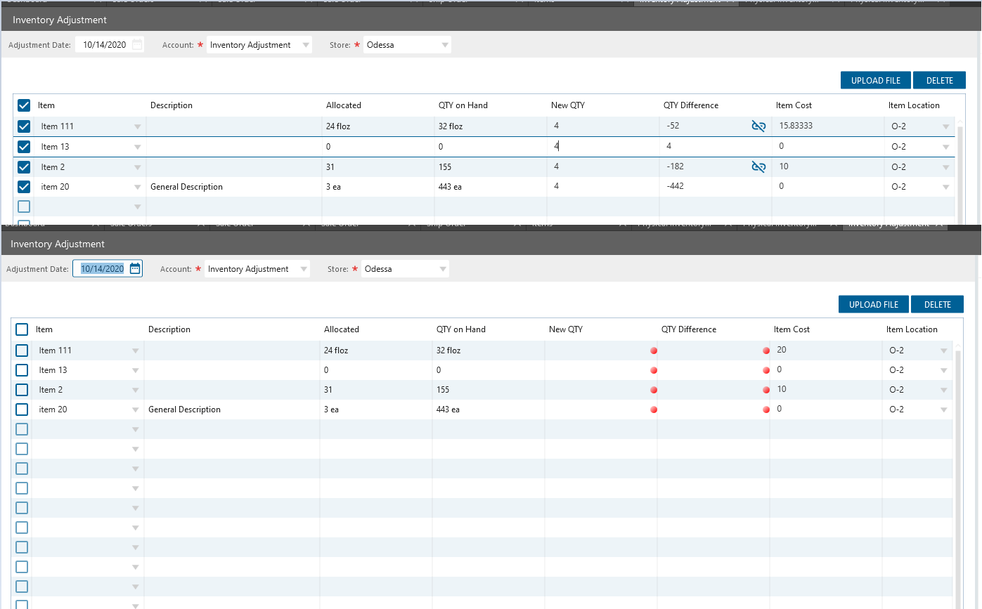 If several Items were checked on the Inventory Adjustment edit form and “New QTY”, “QTY Difference” or “Item Location” values for focus in Item were changed then changes will be applied to all checked Items, and values for the checked Items will be the same as for the focused Item.