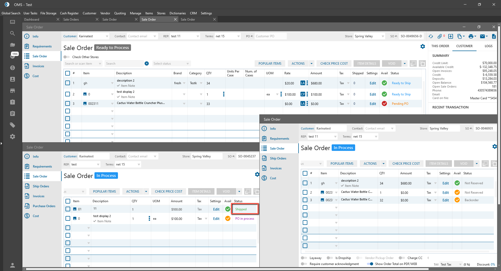 If in the Sales Orders are used Shipped and Not Reserved Items: