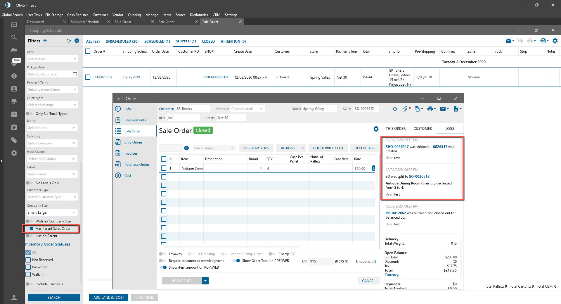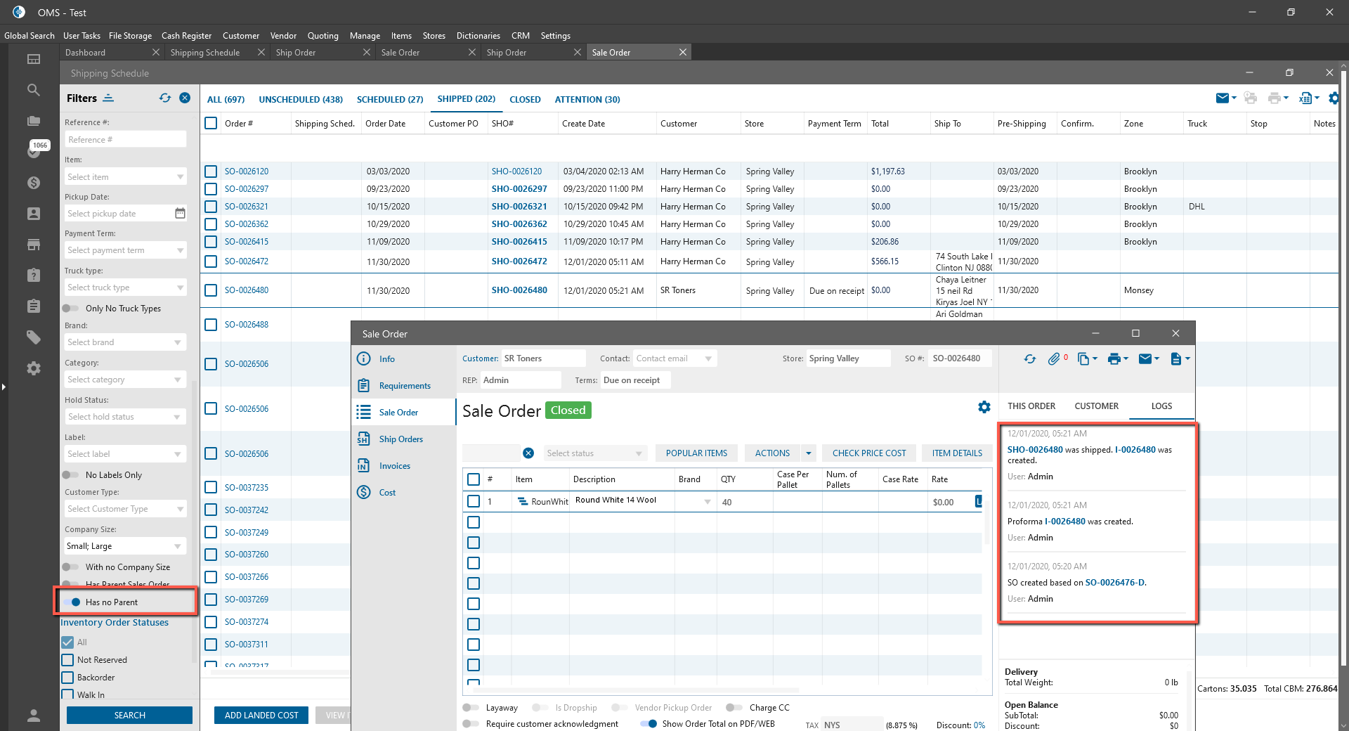 - “Has Parent Sales Order”;