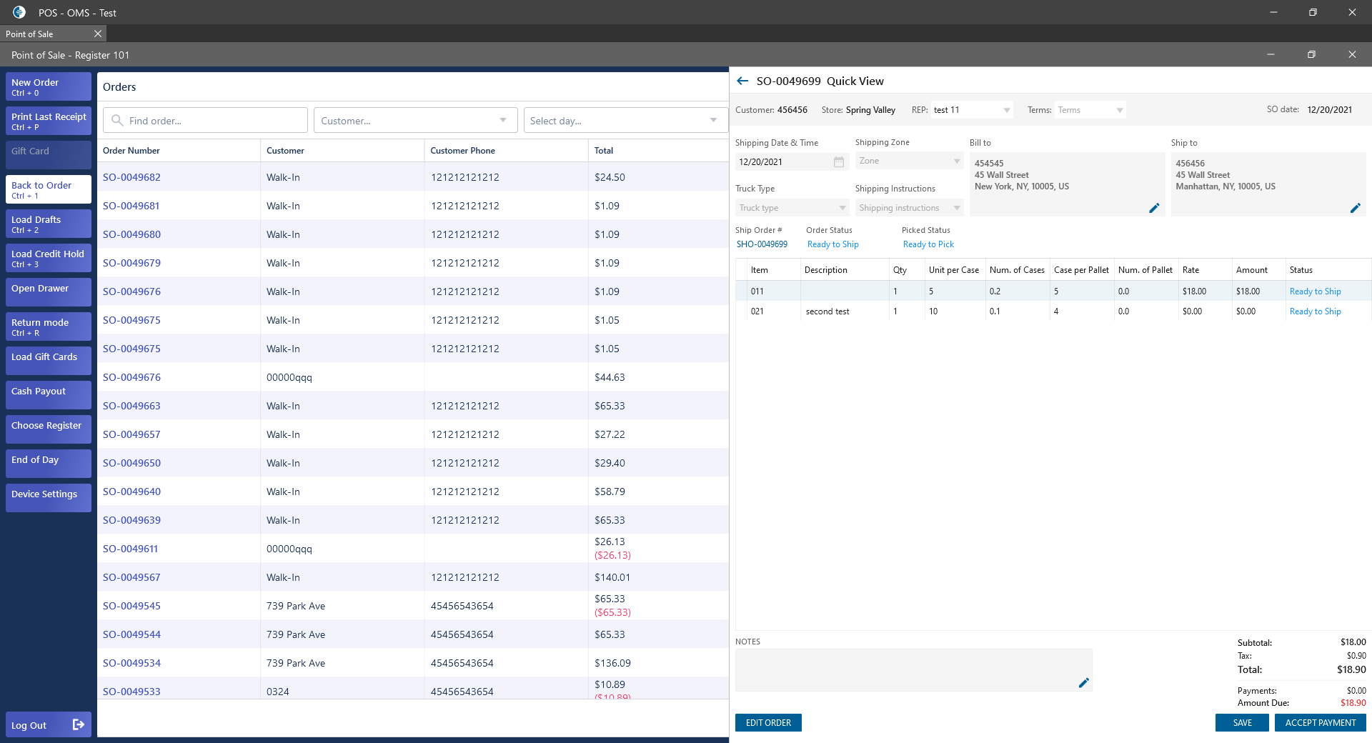 - Orders Numbers were made clickable -> after clicking Orders Quick View panel is opened: