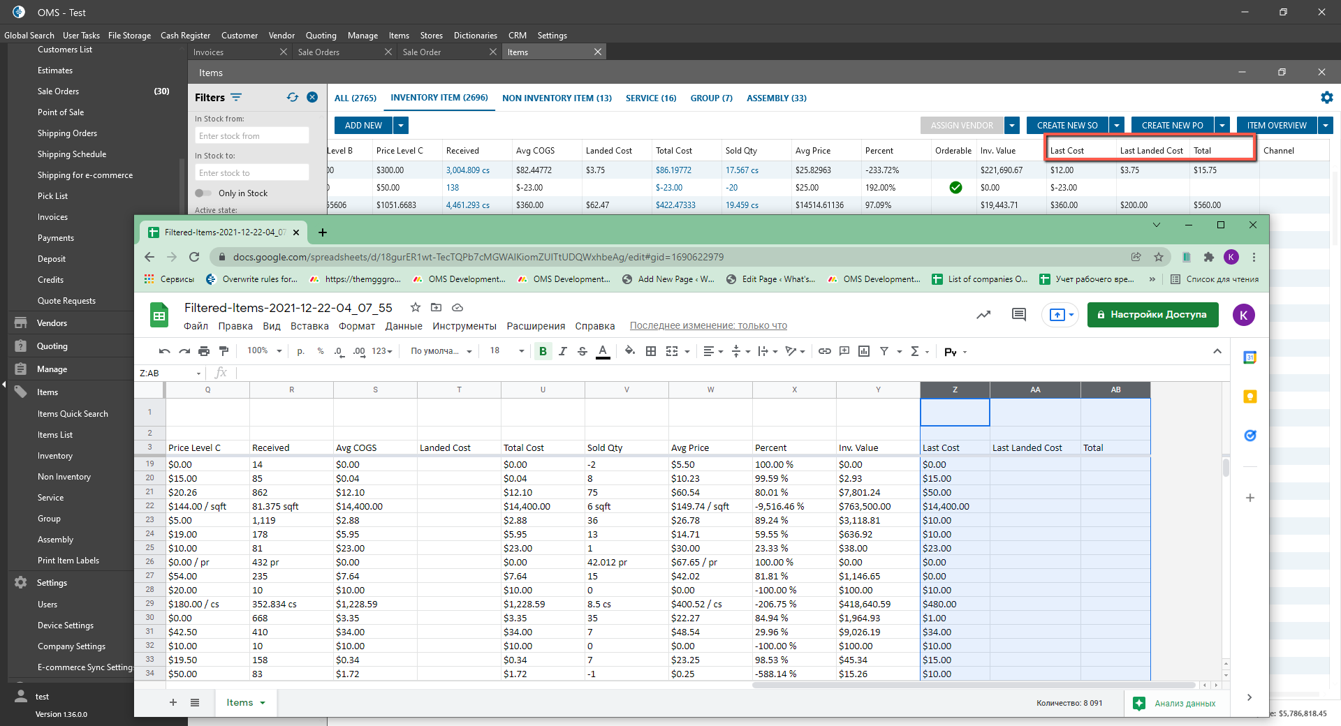 Last Cost / Last Landed Cost / Total columns in the Export Excel file