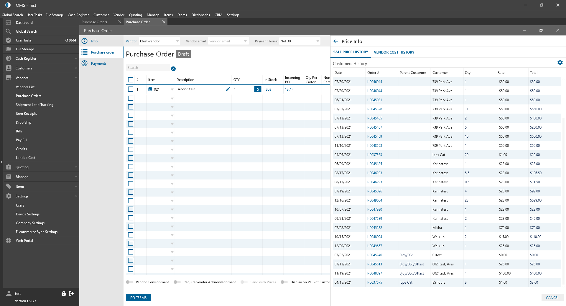 on the tab are displayed the Item Prices based on the Sales Orders.