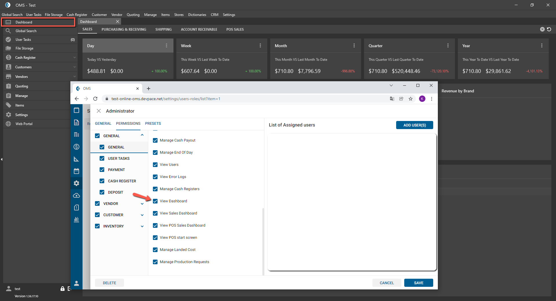 - On the Dashboard Tab -> POS Sales bucket is hidden.