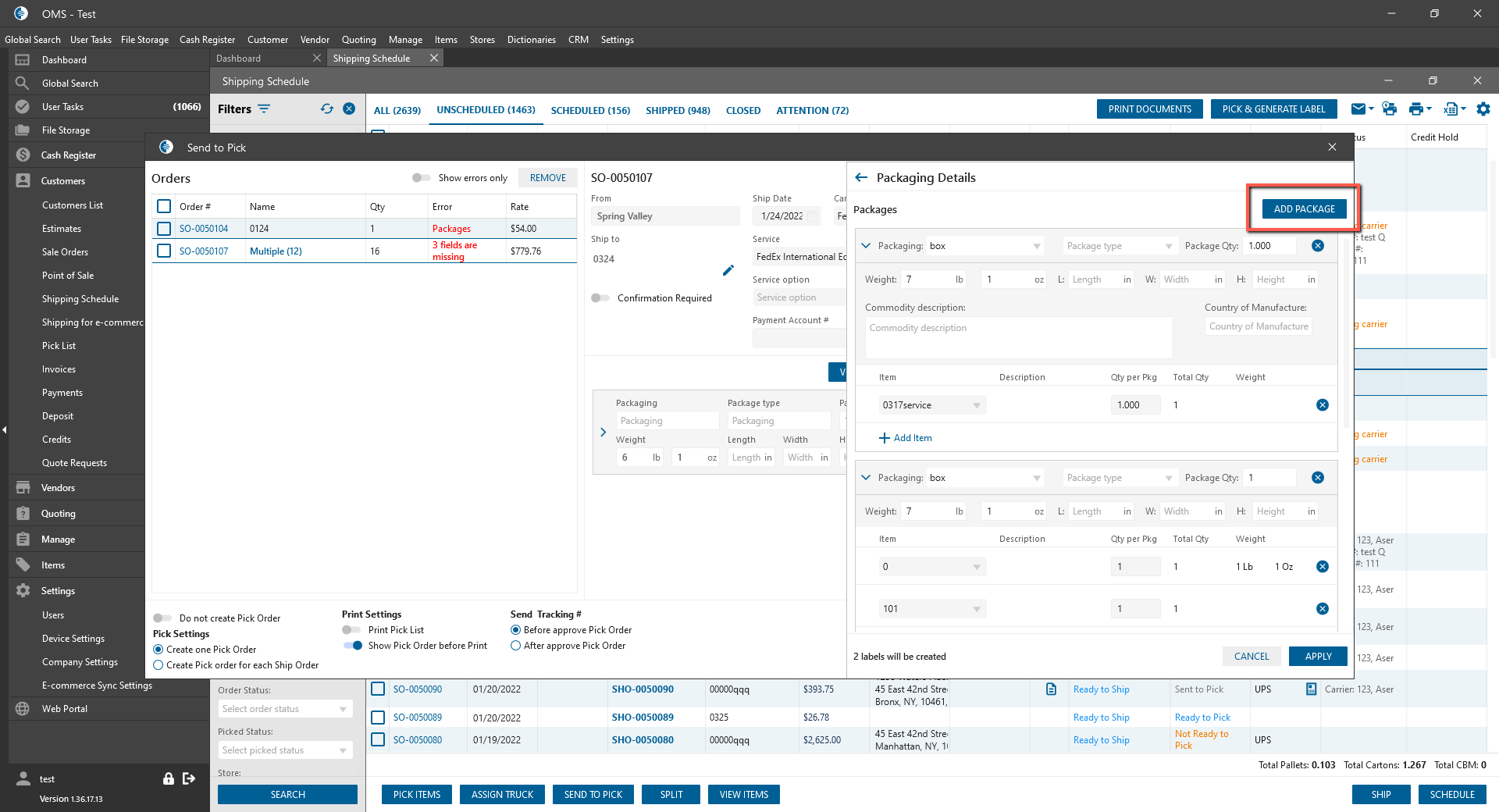 - if some items weren’t added to the Packages -> after clicking on the “Add Package” button -> missing items automatically prefilled to the packages.