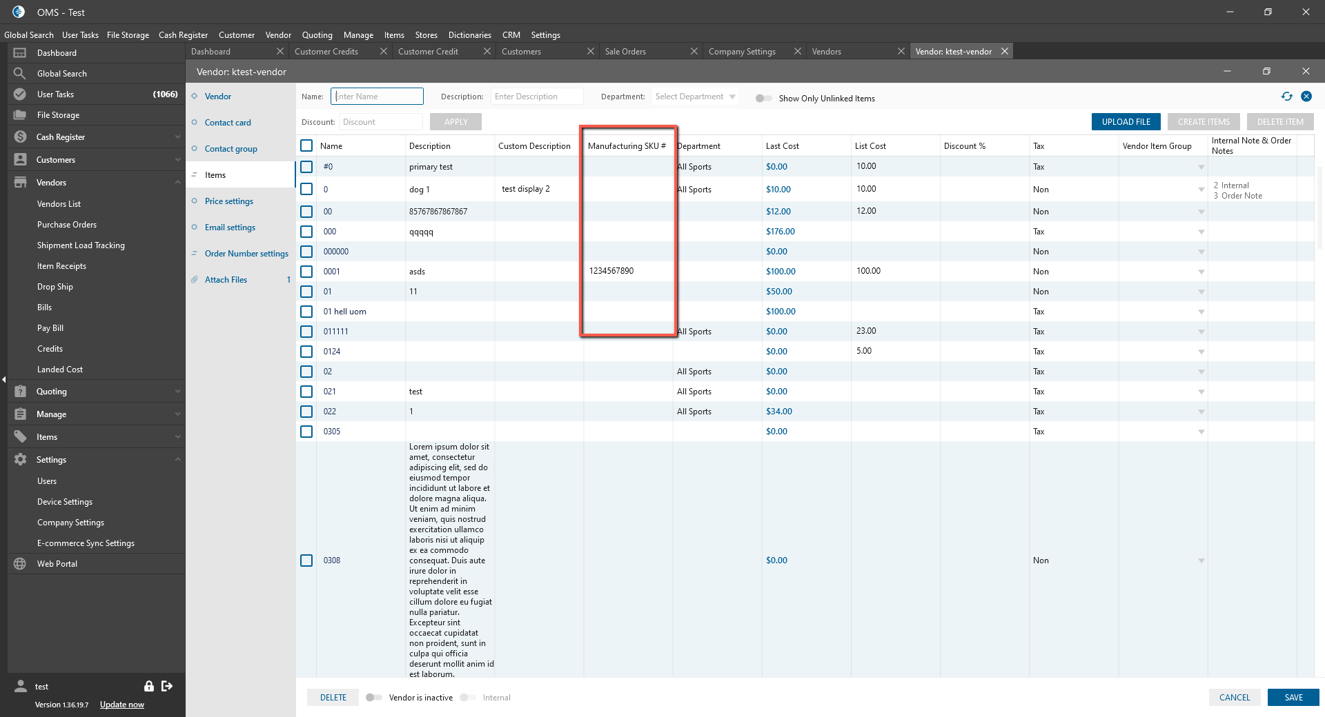 - if the corresponding checkbox is checked and on the Vendor edit form for item is filled Manufacturing SKU#: