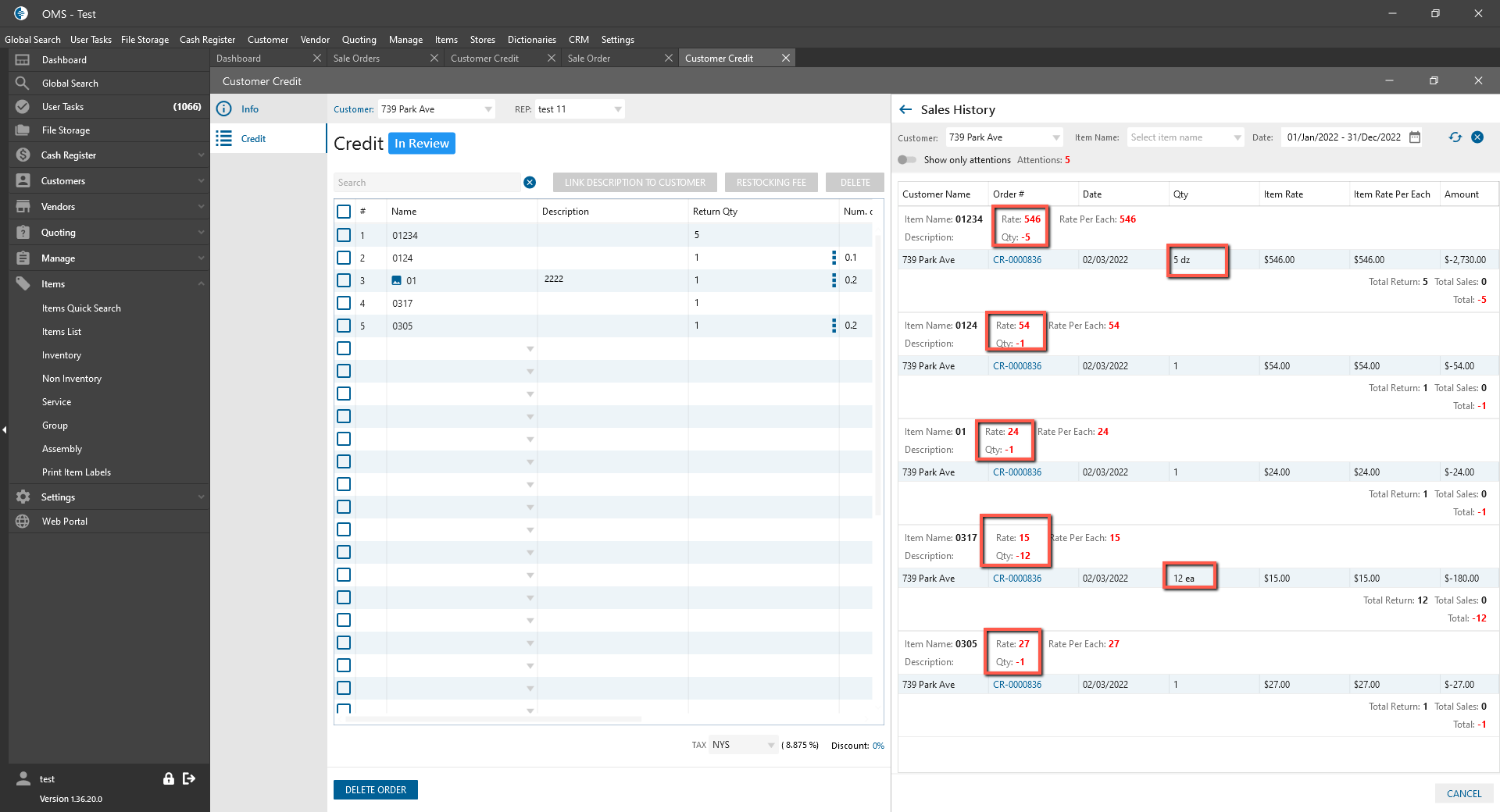 - If Credit was created from Sale Order with UOM items -> on the Credit edit form the “UOM” column is editable;