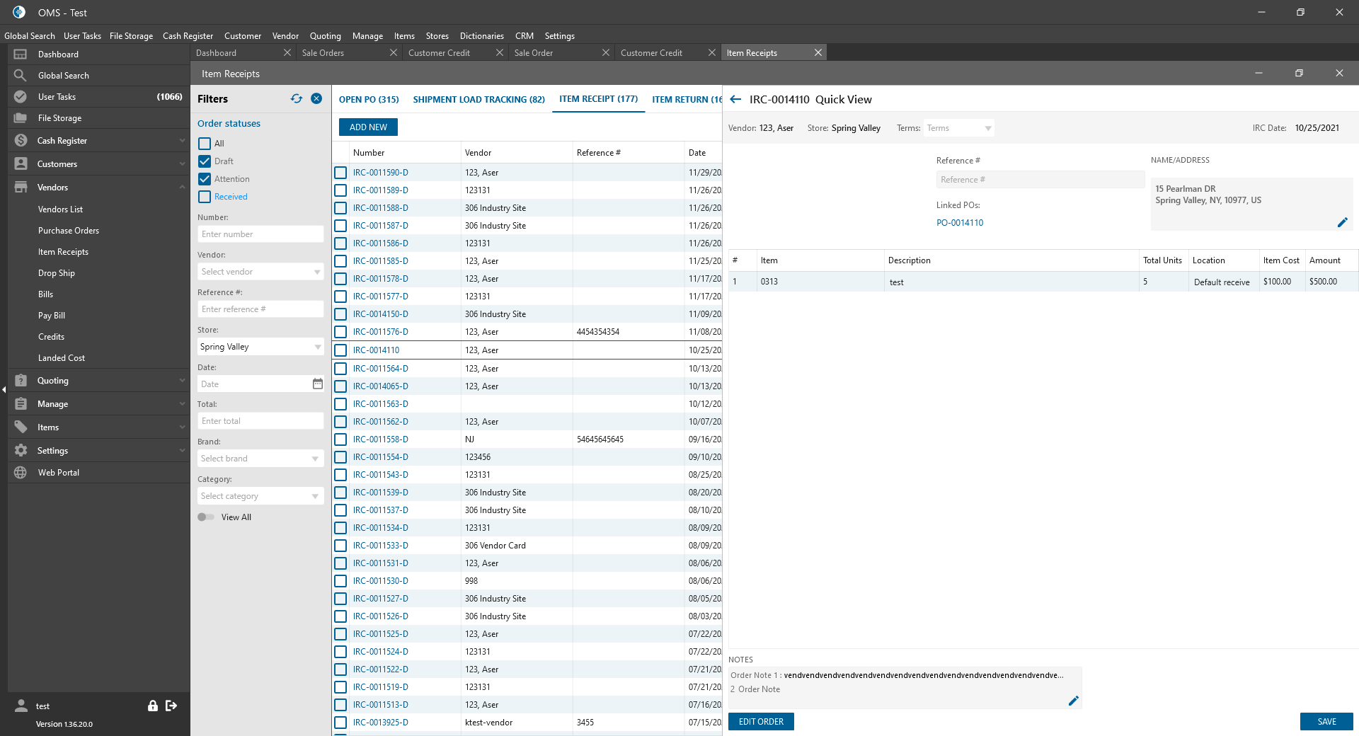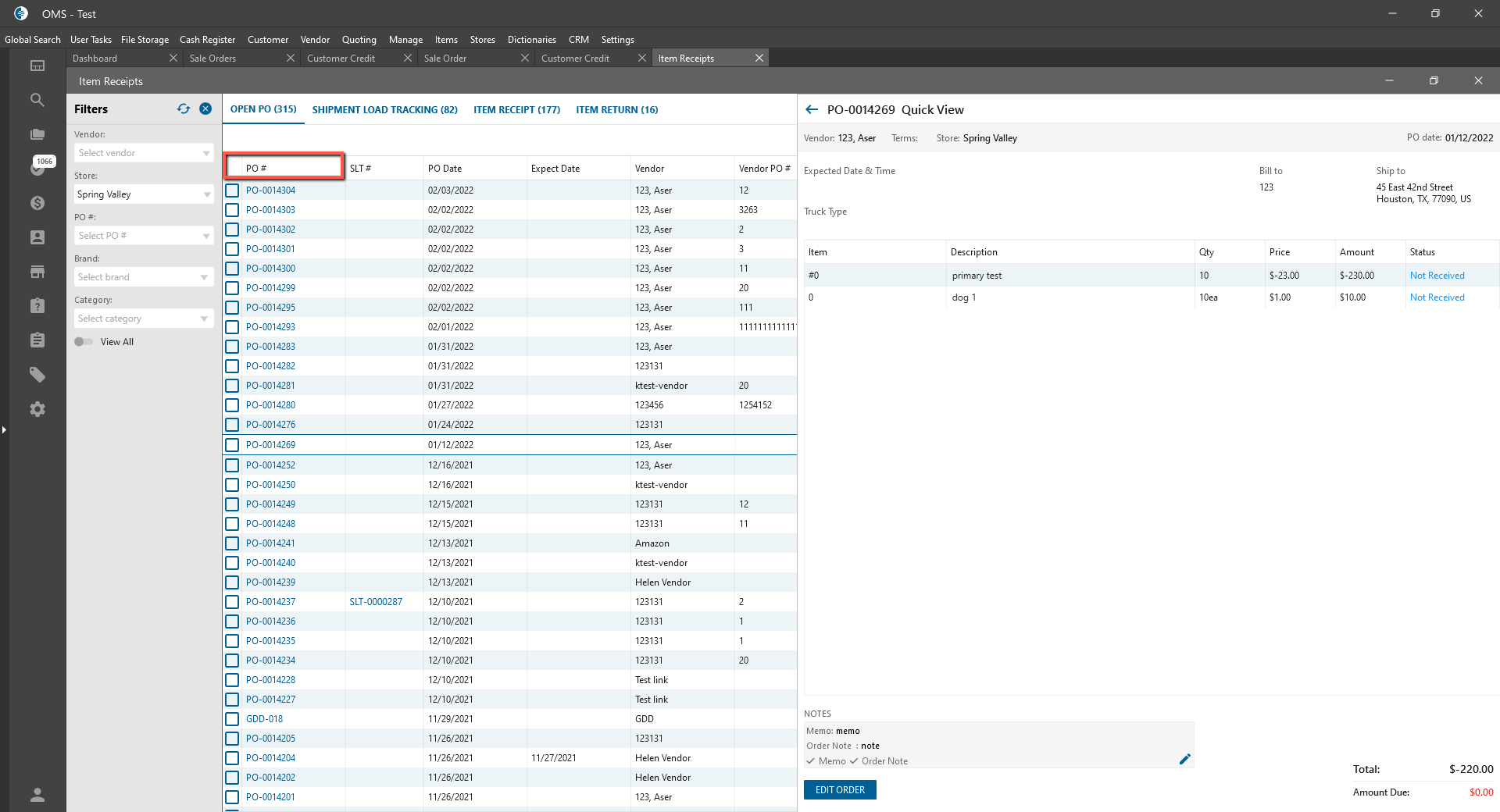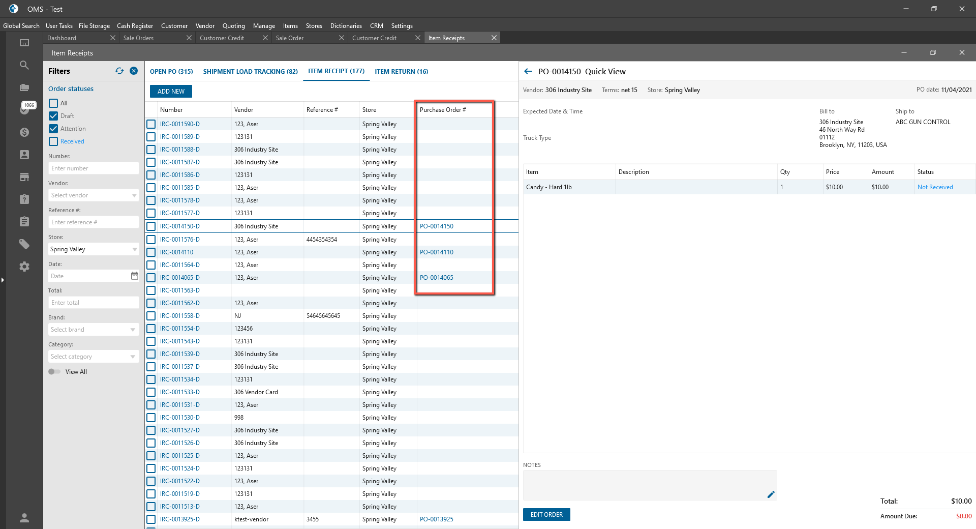 - after clicking on “Up/Down” buttons on the keyboard -> the Item Receipt Quick view panel is automatically changed and the corresponding Order is displayed;