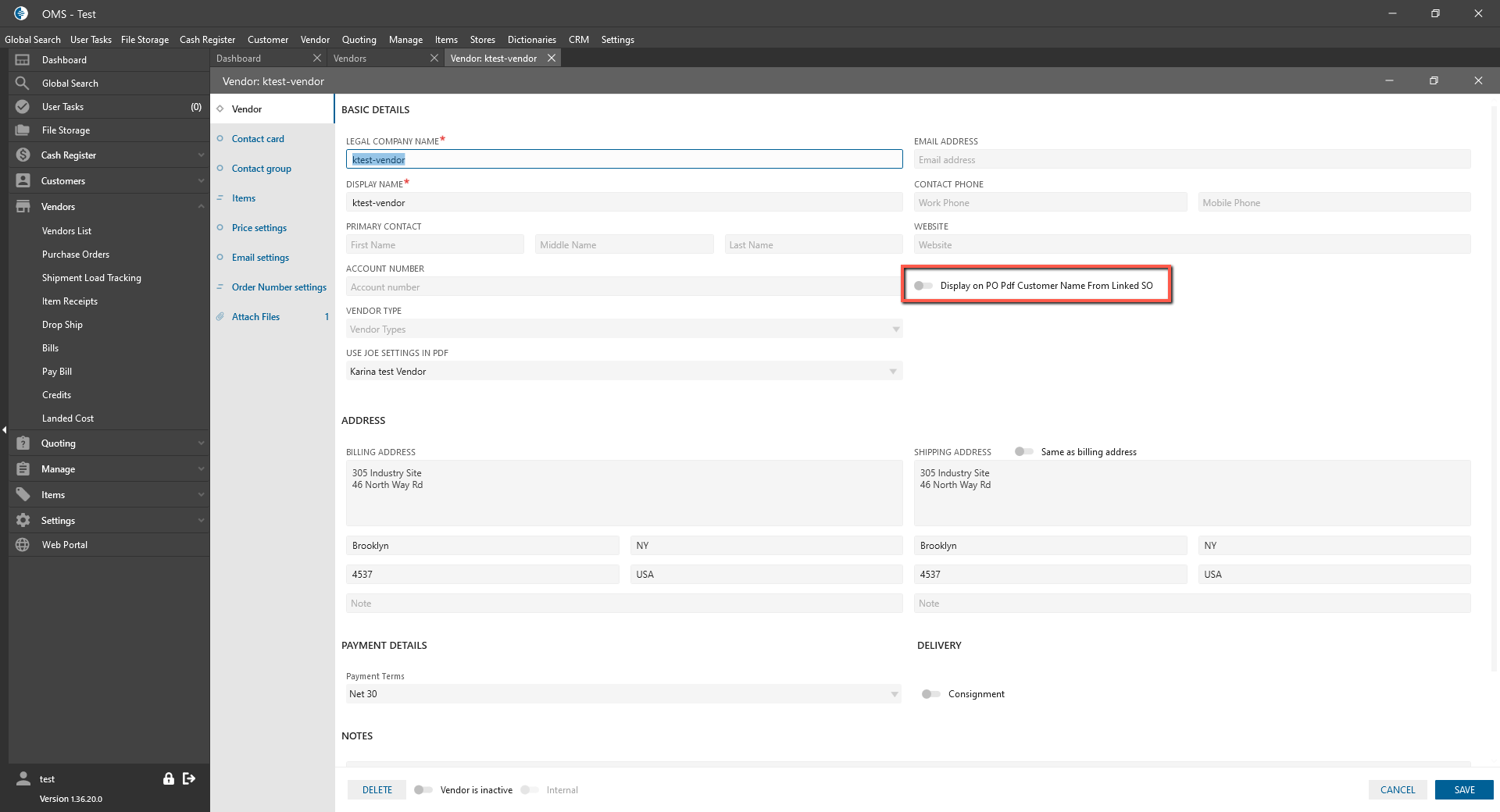 - “Display on PO Pdf Customer Name From Linked SO” checkbox: