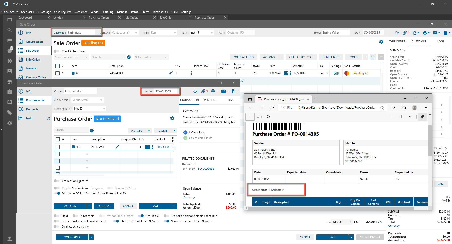 - If Purchase Order has more than 1 linked Sale Order -> is displayed Customer Name from each of the Sales Orders comma separated.