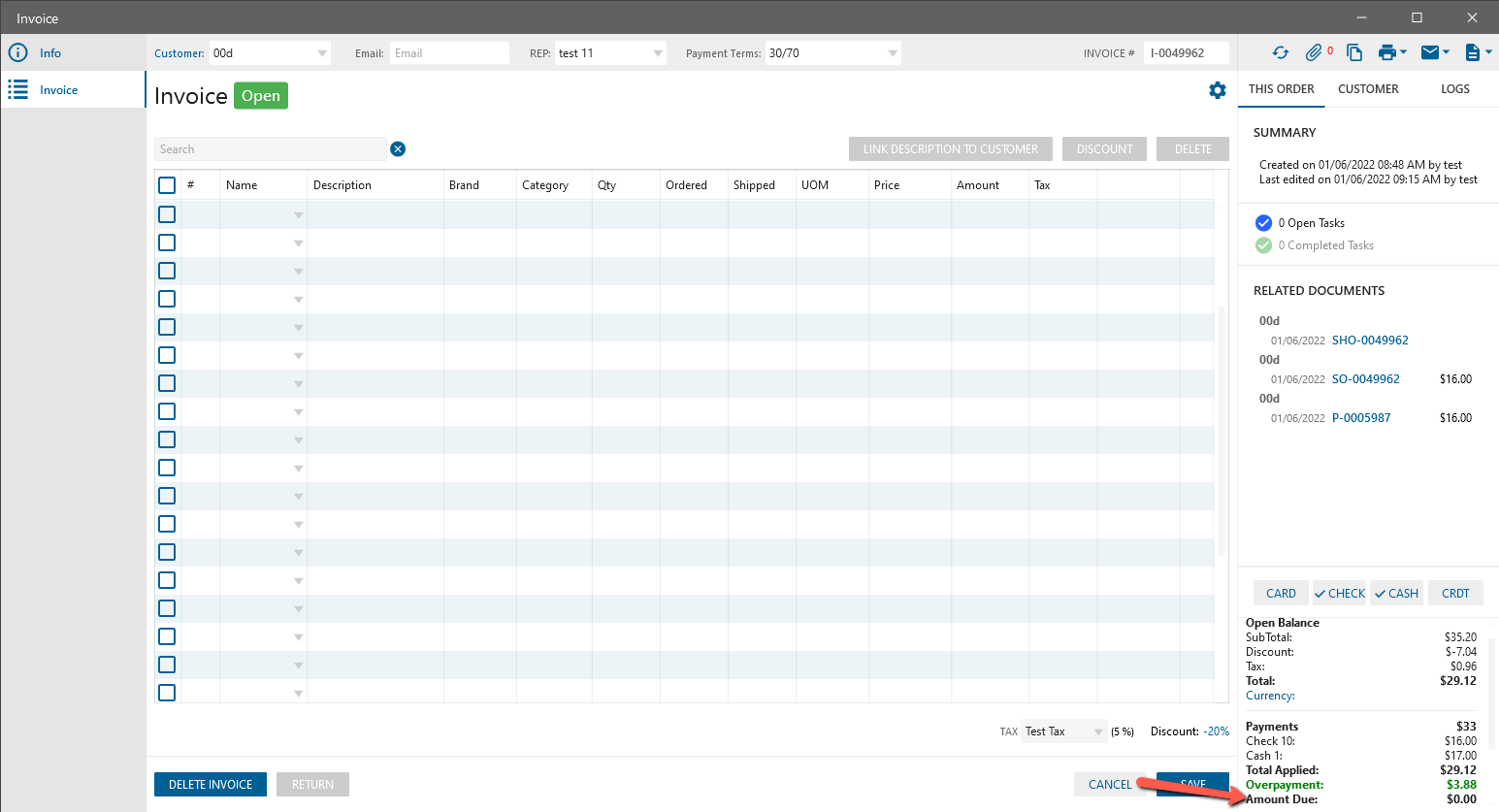 If for the Invoice Order was added Overpayment -> Amount Due is equal 0.