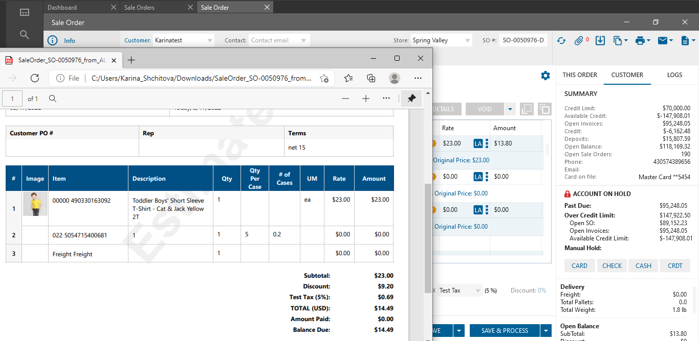 - On the Sale Order/Invoice/Customer Credit PDF: