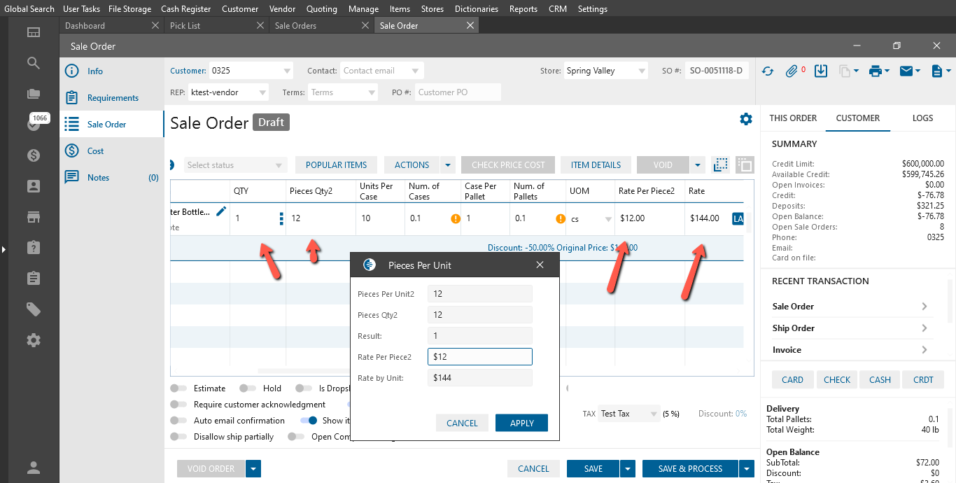 - “Pieces Per Unit” button -> “Pieces Per Unit” pop-up is opened: