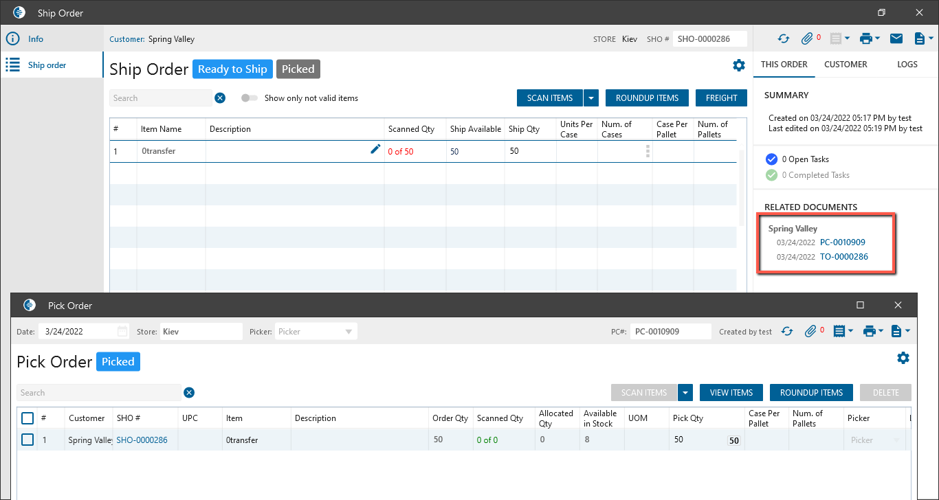 - was added the ability to pick Ship Orders with linked TO -> With Reserve Inventory panel from Pick Order: