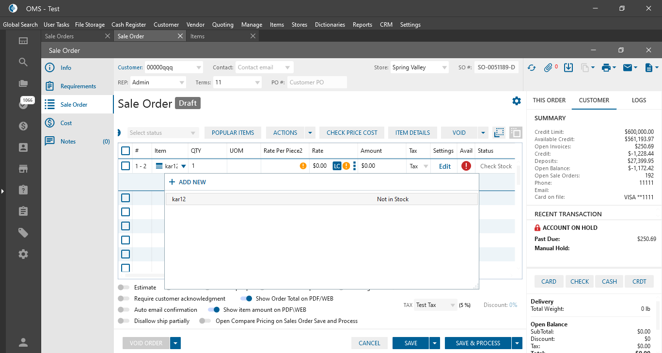 - On the Sale Order edit form -> If the user added no in stock assembly item -> this item is in Check Stock status by default;