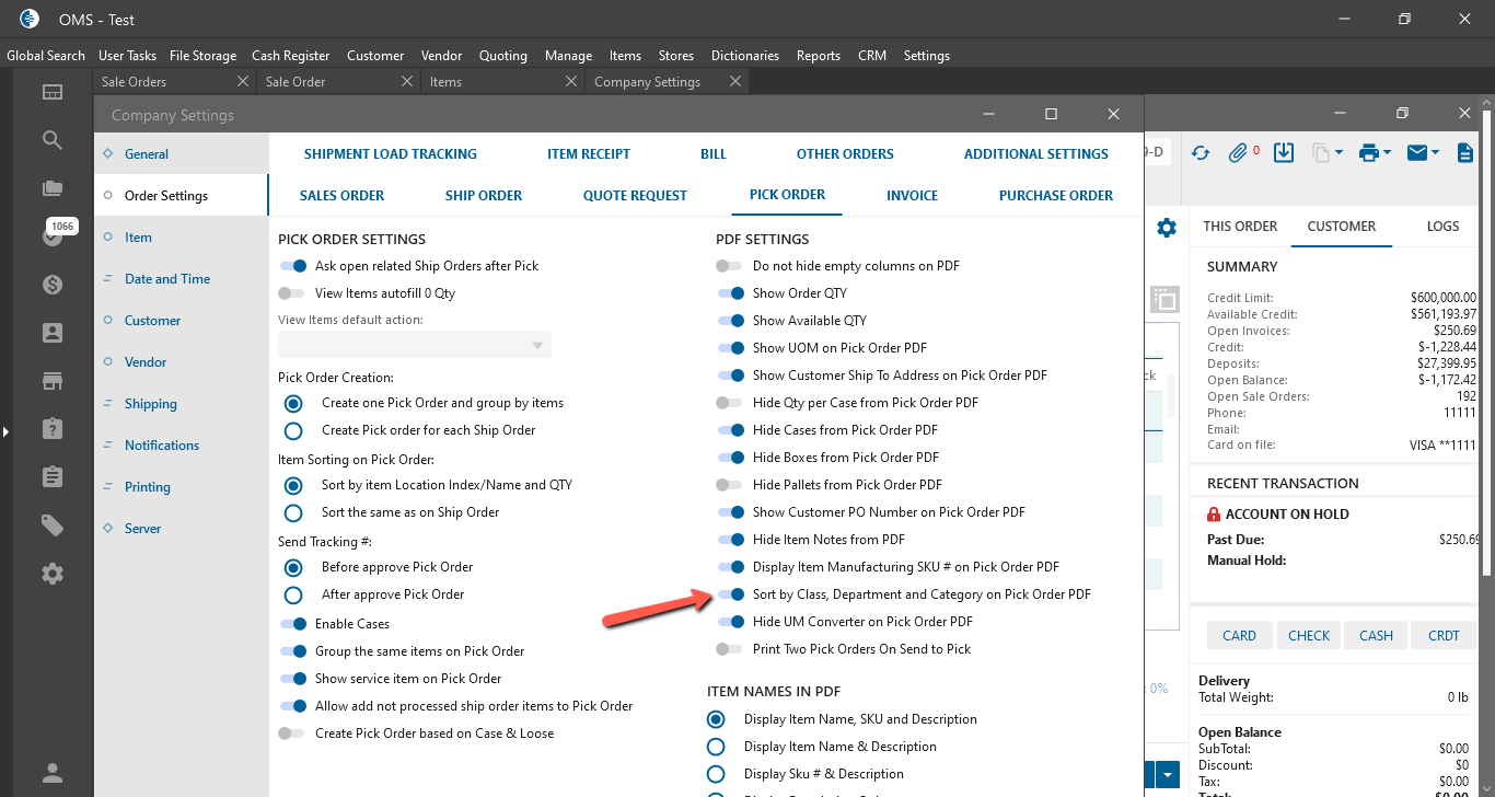 - was added next to the “Display Item Manufacturing SKU# on Pick Order PDF” checkbox;