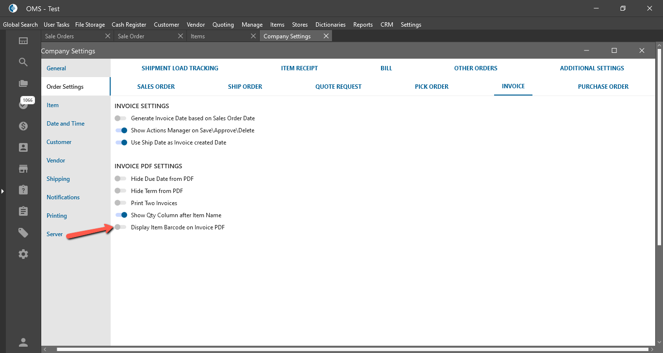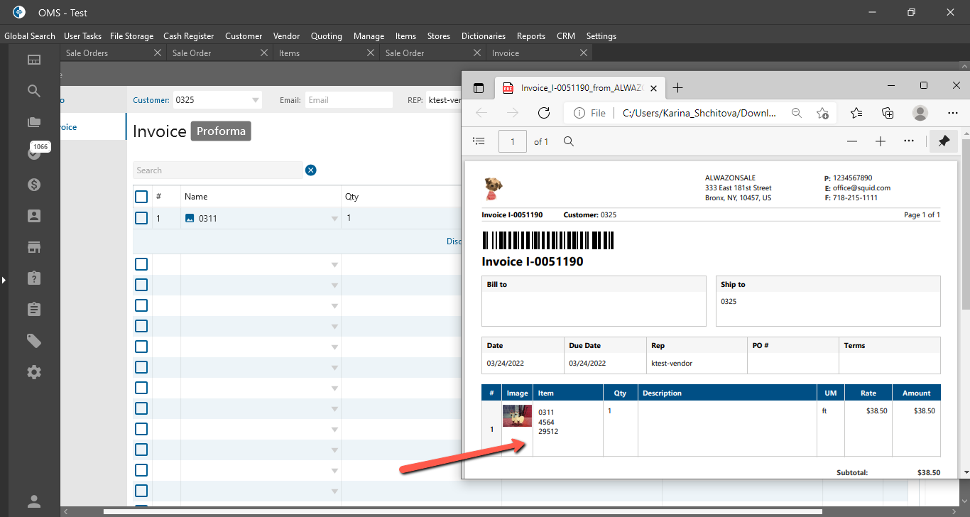 - Item Barcode is displayed on the Invoice PDF In the Item Name column.