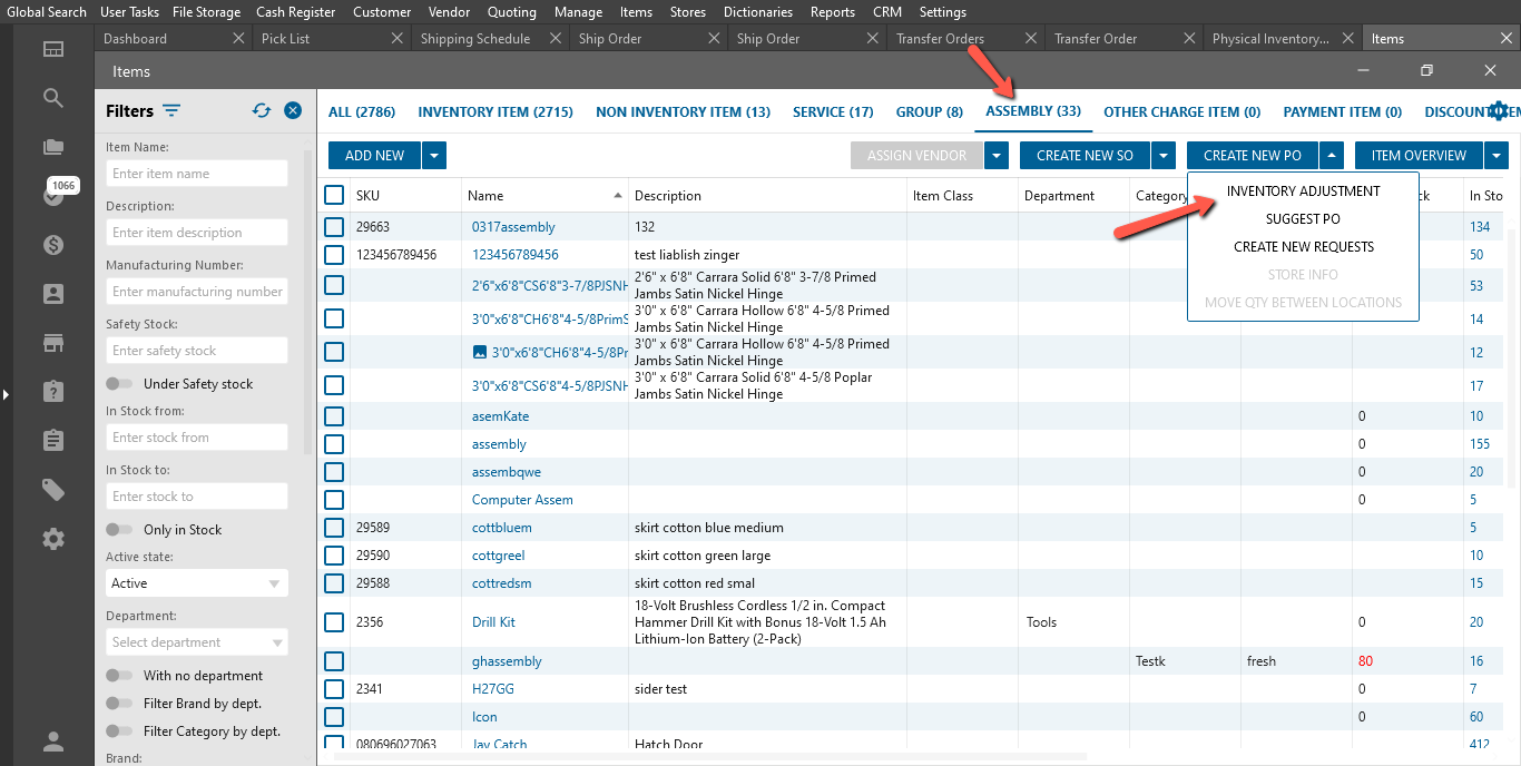 - was added “Inventory Adjustment” button to the “Create New PO” multi-button;