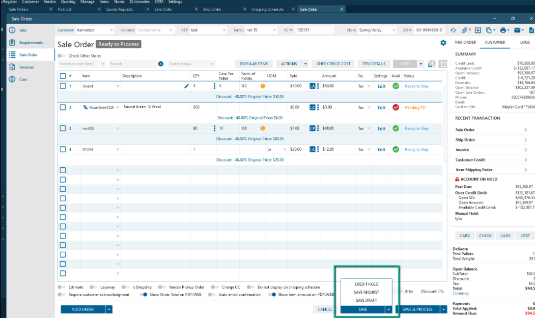 the “Save Draft” button is clickable and the Order can be converted to Draft status.