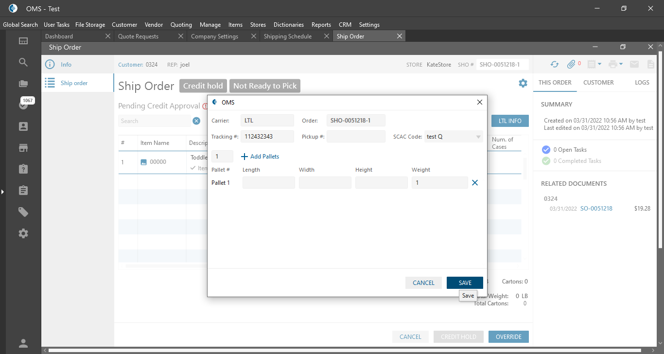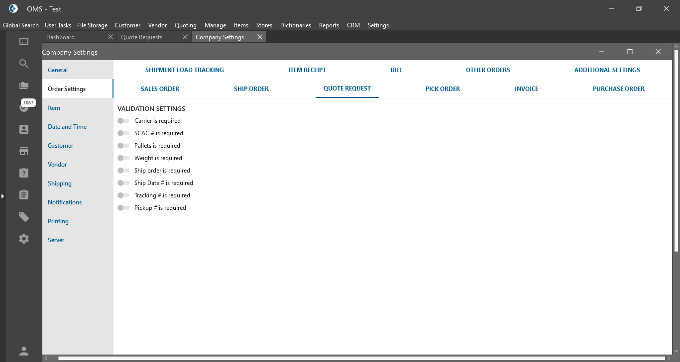 - after clicking on the button -> is displayed OMS pop-up with all fields the same on the Quote Request;